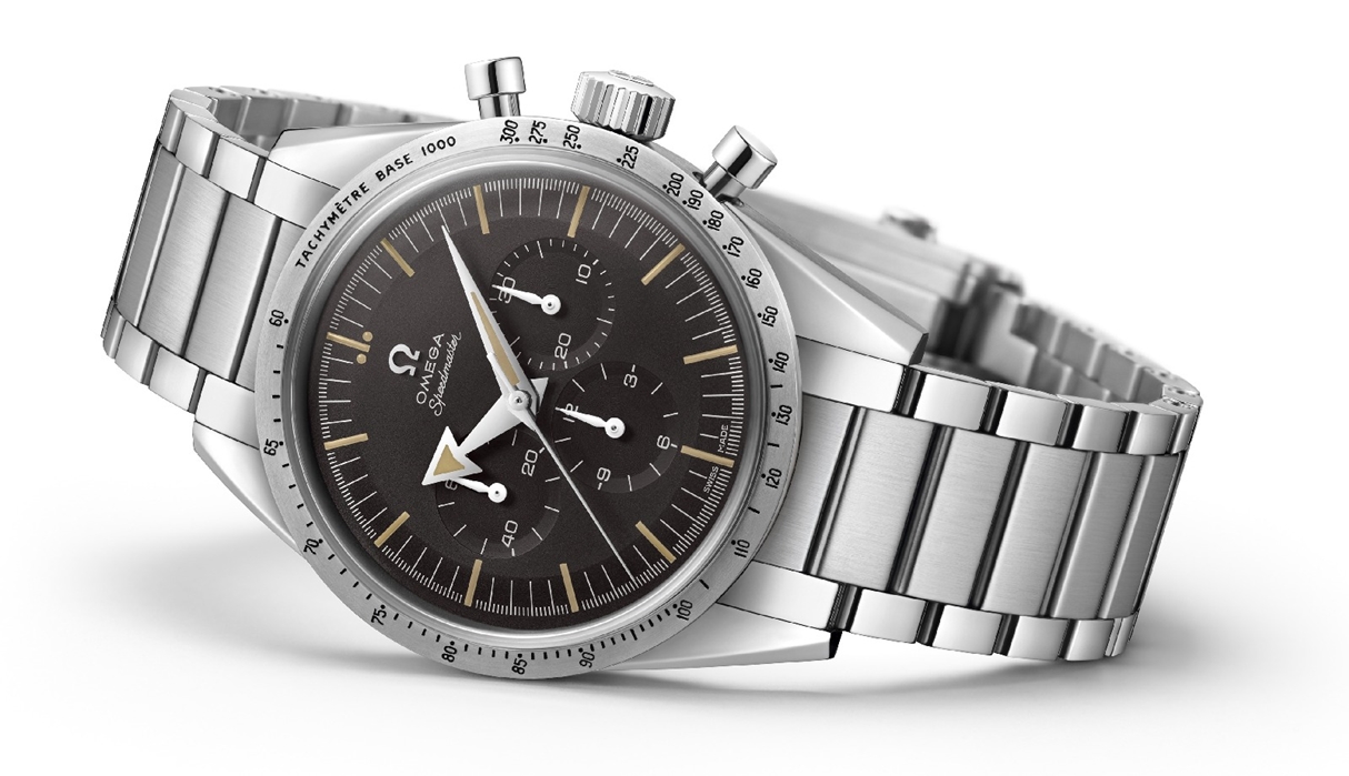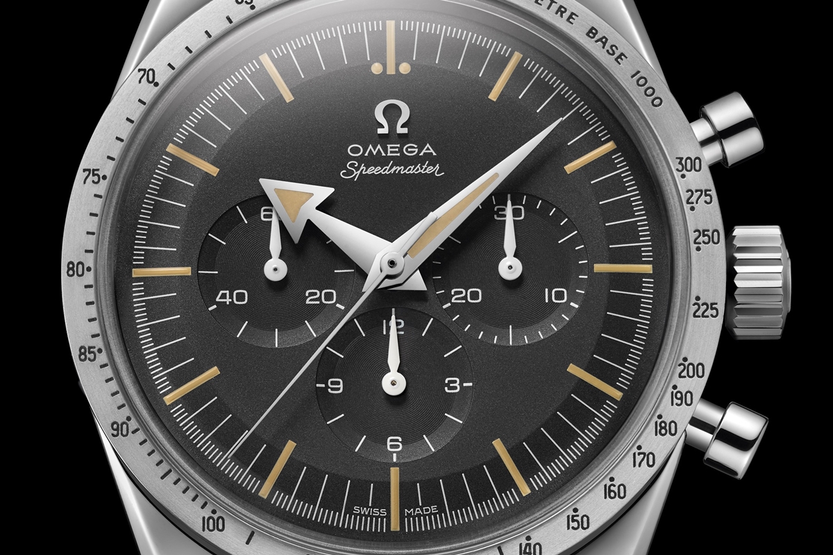 Oryginalny Speedmaster, zwany "Broad Arrow" ze względu na charakterystyczne wskazówki, był nie tylko pierwszym Speedmasterem, ale także pierwszym zegarkiem na świecie wyposażonym w stoper ze skalą tachometryczną na lunecie zamiast nadruku na tarczy.