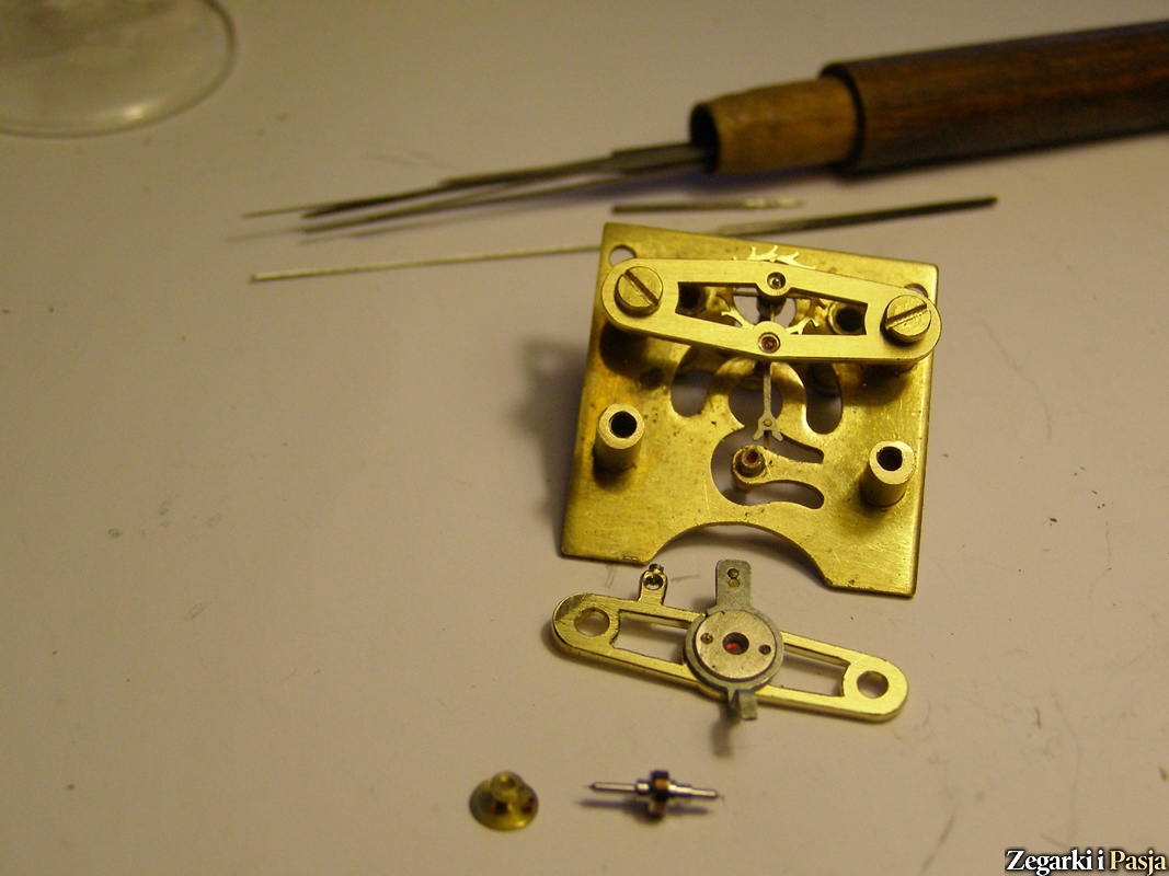 Do tego zegarka dorobiłem koło wychwytowe, kotwicę, balans i dwie płytki wychwytu.