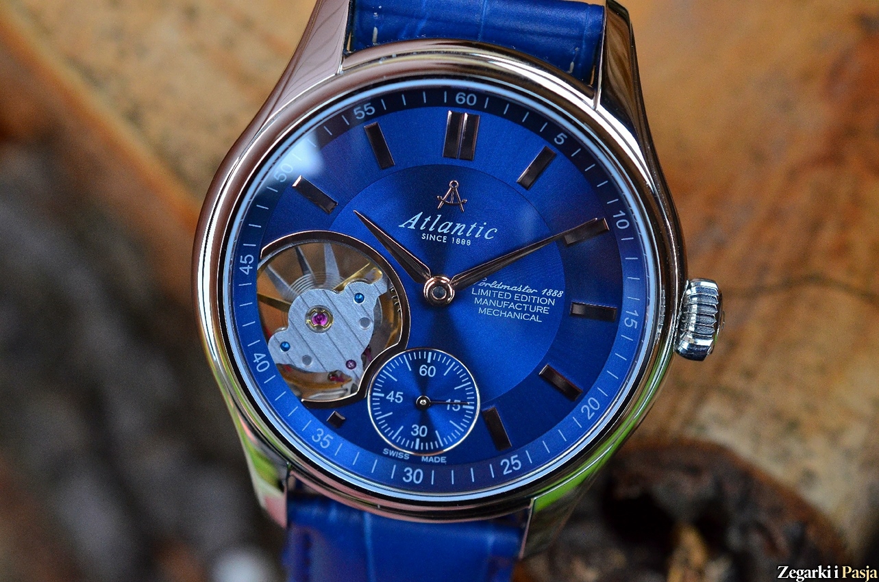Atlantic Worldmaster 1888 Lusso Manufacture Mechanical Open Heart Limited Edition to duży zegarek. Jego okrągła koperta z łagodnie wypuszczonymi uszami ma 44 mm średnicy, mimo to dobrze układa się na nadgarstku, co ułatwia niewielka 12 mm grubość.