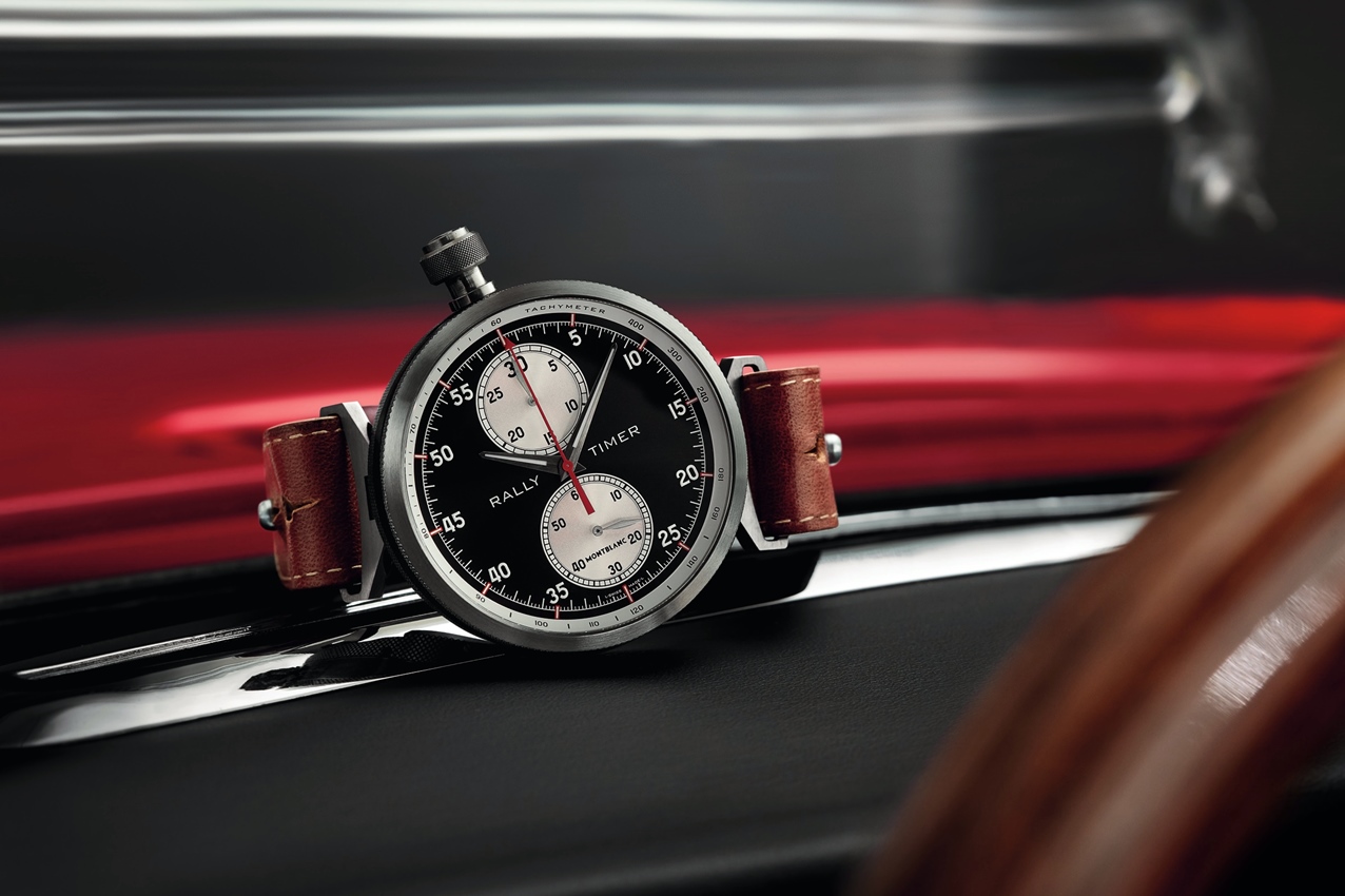 Każdy element projektu zegarka jest bezpośrednio osadzony w świecie wyścigów ze szczegółami, które przypominają złoty wiek wyścigów samochodowych.