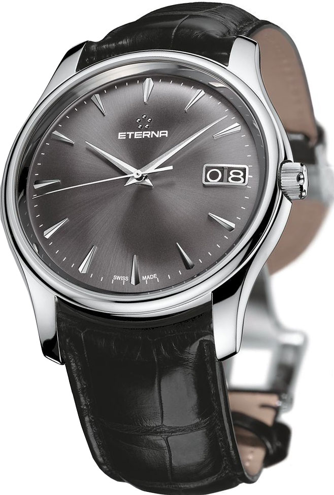 The Big Date made his debut on the Vaughan Big Date collection. The Eterna 3030 is equipped with a convex profile in the shape of a lens, in which the curved surface is precisely composed of two discs of a date unit. They are designed in the form of two concentric rings rotating side by side instead of a conventional system (common in most Big Date) with two flat overlapping discs.