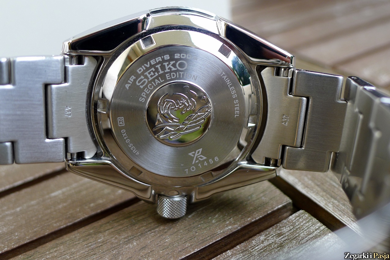 Stąd przed oznaczeniem klasy 200 m znalazło się słowo “Diver”, które nie określa stylu tego zegarka, a jest potwierdzeniem zgodności z surowymi normami. W celu dodatkowego zabezpieczenia przed zalaniem zegarek wyposażono w zakręcaną koronkę, która zyskała również elementy chroniące ją przed przypadkowym uderzeniem oraz w pełni stalowy, również zakręcany dekiel.