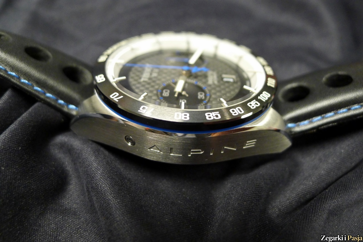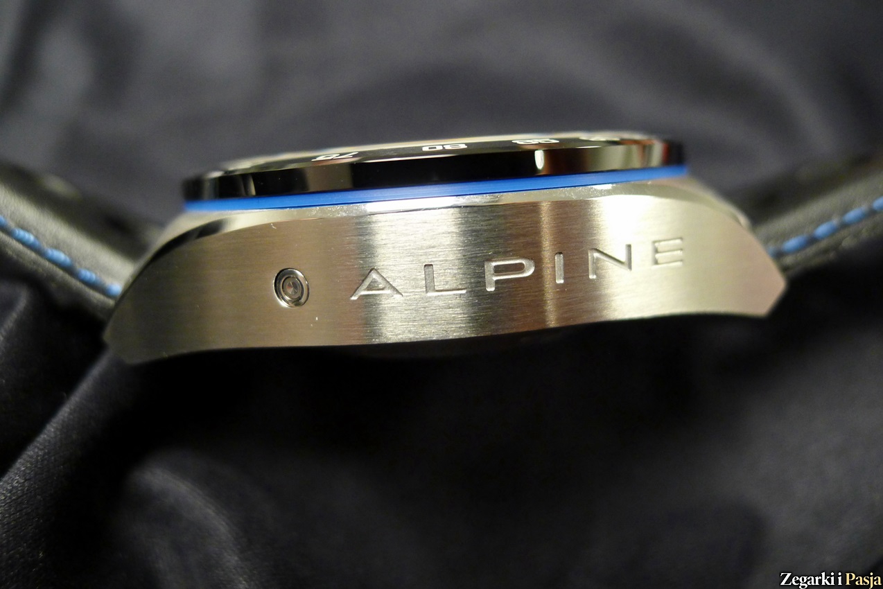 Smaczkiem jest niebieska wskazówka sekundowa stopera, której przeciwwagę ukształtowano jako stylizowane A, będące logo firmy Alpine.