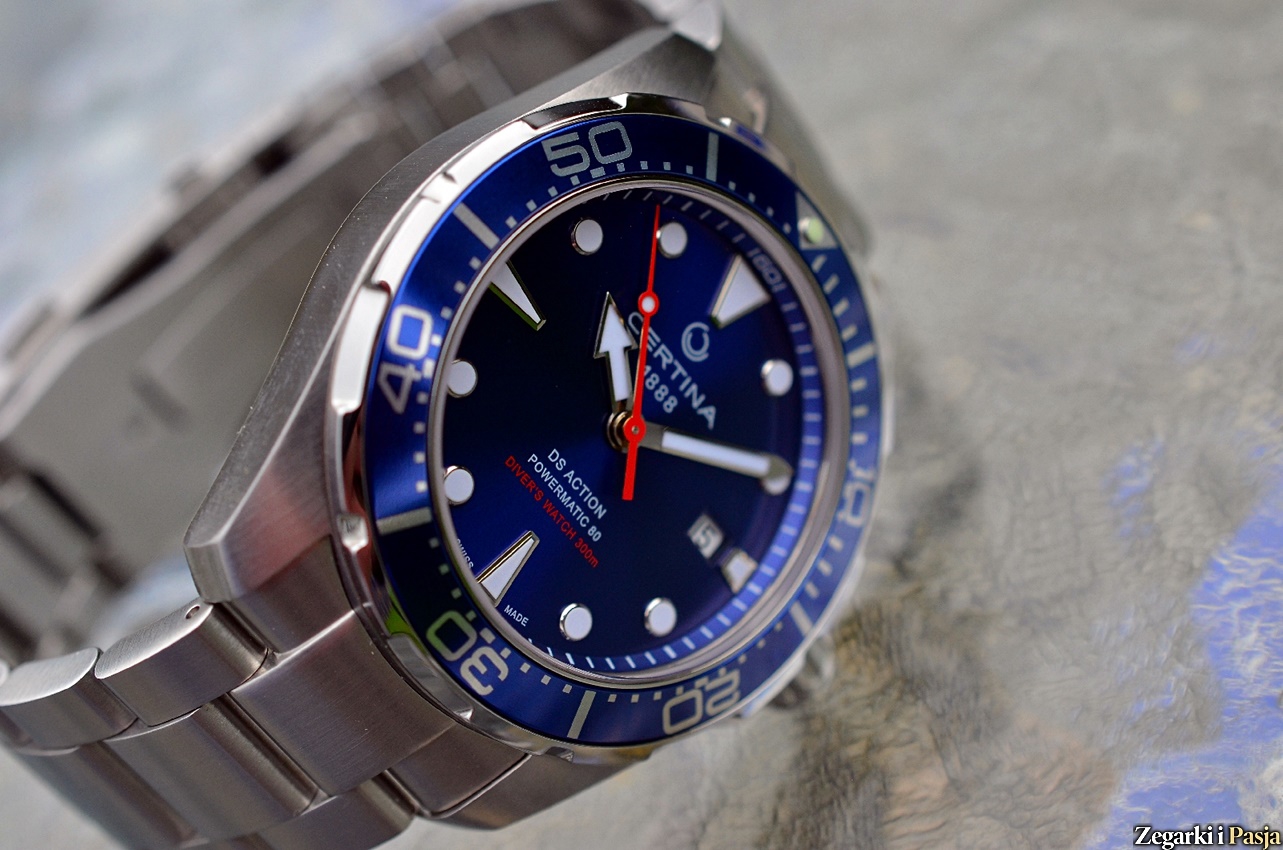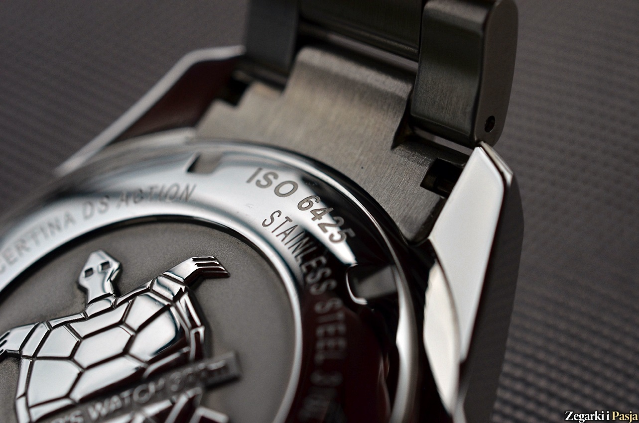 DS Action Diver Powermatic 80 jako zegarek dla prawdziwego nurka, poza wspomnianym spełnieniem rygorów normy ISO 6425, jest wodoodporny do 300 metrów. To wynik dający pewność i bezpieczeństwo jeśli chodzi o używanie go podczas uprawiania sportów, także w trudnych warunkach, a także oczywiście podczas nurkowania, nawet z akwalungiem. Poczucie bezpieczeństwa poza parametrami technicznymi zapewnia wygląd i budowa koperty. Nie jest ona wprawdzie zbyt „rozrośnięta”, a wręcz jak na możliwości zegarka nawet dość filigranowa, jednak techniczny styl z wyraźnymi krawędziami wraz z dokładnym szczotkowaniem, solidnymi, skośnie zakończonymi uszami i osłonami koronki daje obraz „toolwatcha”, któremu żadne traktowanie nie straszne.