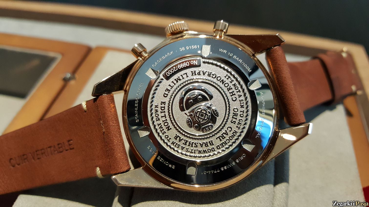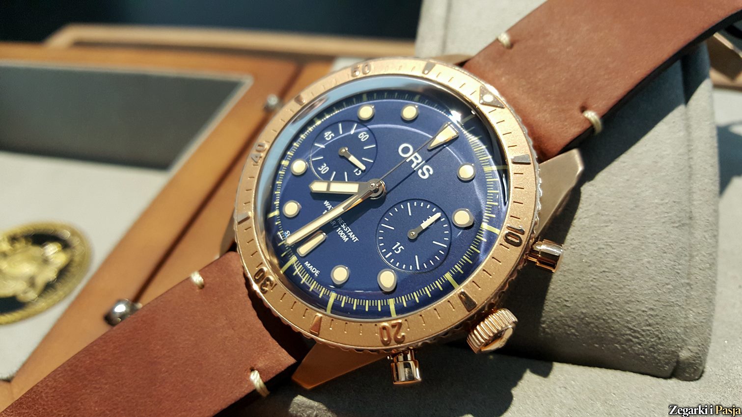 Oris prezentuje więc kolejny zegarek z linii diver, inspirowanej modelem z lat 60-tych, którego koperta wykonana jest z coraz bardziej cieszącego się popularnością i estymą wśród miłośników zegarków materiału, czyli z brązu.