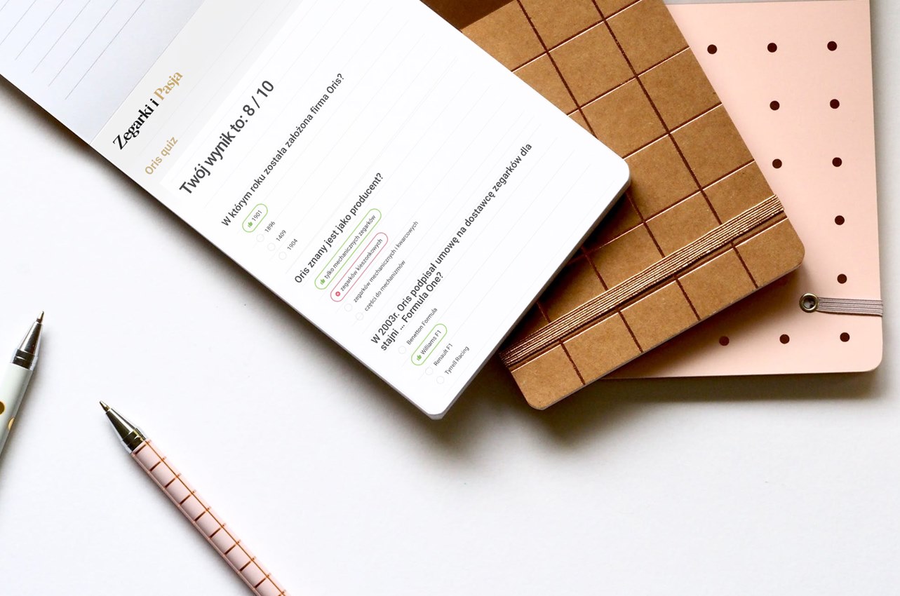 Jesteśmy pierwszym portalem branżowym w Polsce, który stworzył tego typu mechanizm dedykowany stricte zegarkom i zegarmistrzostwu. Nasz pierwszy quiz, który cieszy się dużym zainteresowaniem, przygotowaliśmy wspólnie z marką ORIS i dotyczy on właśnie tego producenta zegarków.