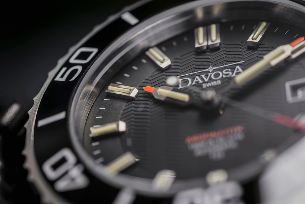 Patrząc na tarczę modelu Lumis, pozornie może wydawać się, że cyferblaty poszczególnych wersji różnią się od siebie jedynie kolorami i stylem indeksów, ale po bardziej szczegółowym przyjrzeniu im się, okazuje się, że tak nie jest. Davosa przykłada ogromną wagę do detali, dlatego tarcza modelu Argonautic Lumis, nie jest zwykłym, gładkim „czarnym dyskiem”.