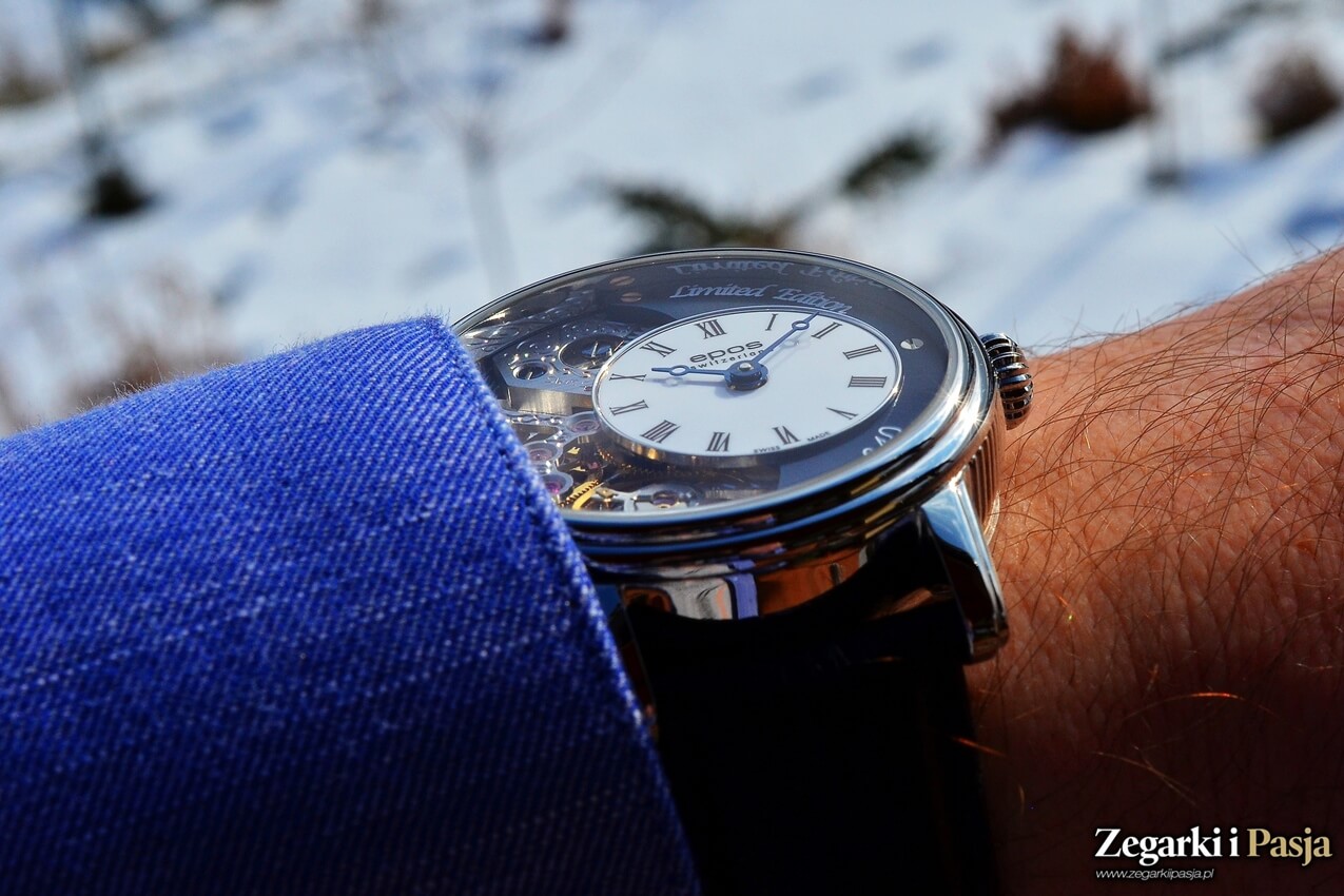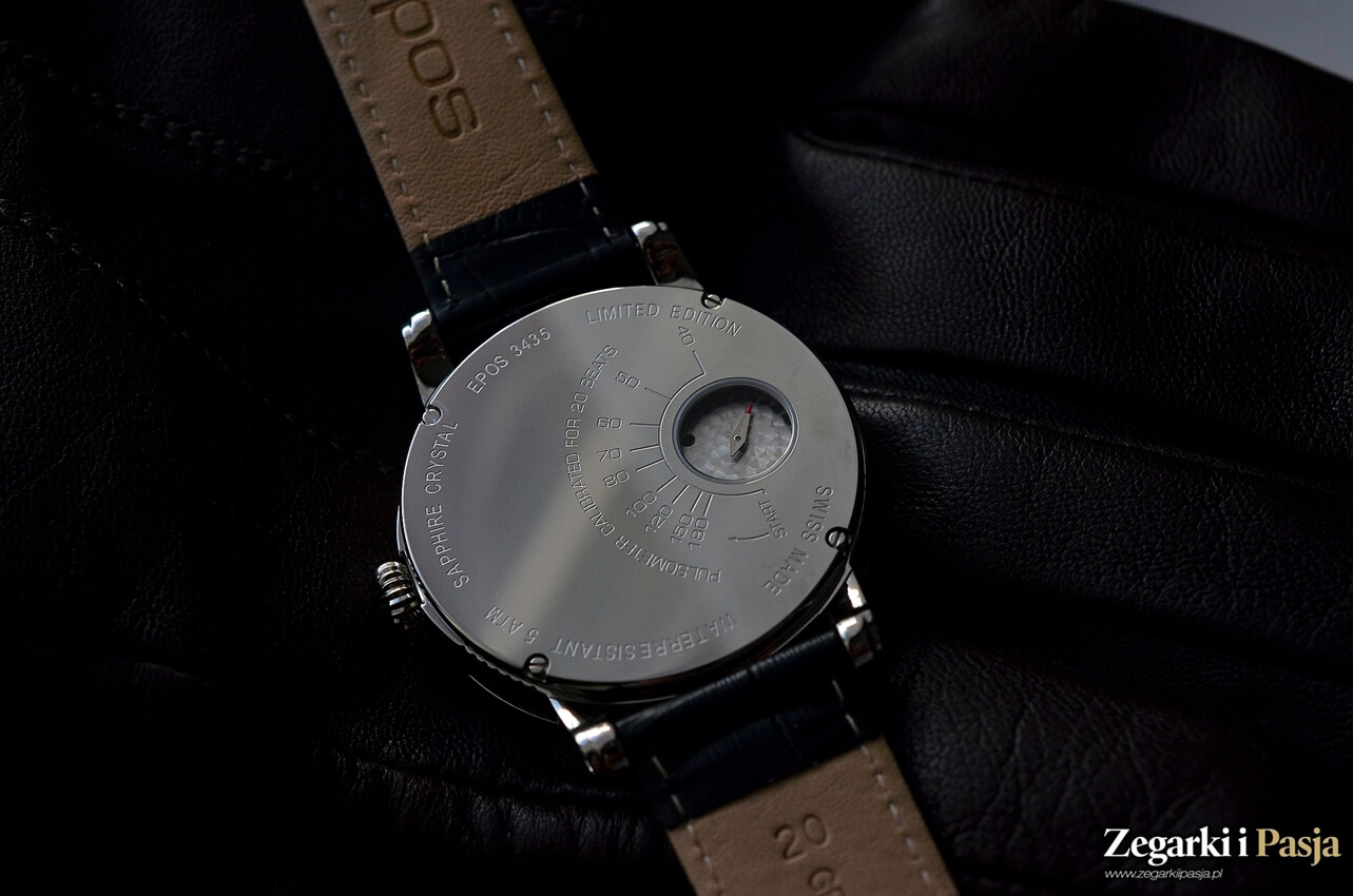 W nowym modelu możemy dostrzec mniej, jeśli chodzi o wyeksponowaną część mechanizmu, ale za to otrzymujemy więcej w zakresie praktyczności. Nowa wersja wydaje się być jakby dojrzalsza w stosunku do EPOS 3435 Verso 1, ale jednocześnie zegarek ubogacono stylistycznie i zdecydowanie poprawiono jego czytelność. Wprawdzie w tego typu zegarkach czytelność nie jest cechą najważniejszą, bo bardziej liczą się wrażenia estetyczne, ale mając na uwadze fakt, że zegarek ten ma pełnić rolę naszego codziennego towarzysza, poprawienie czytelności stanowi atut. Tym bardziej, że zastosowane zmiany mają także, moim zdaniem, pozytywny wpływ na wygląd zegarka.