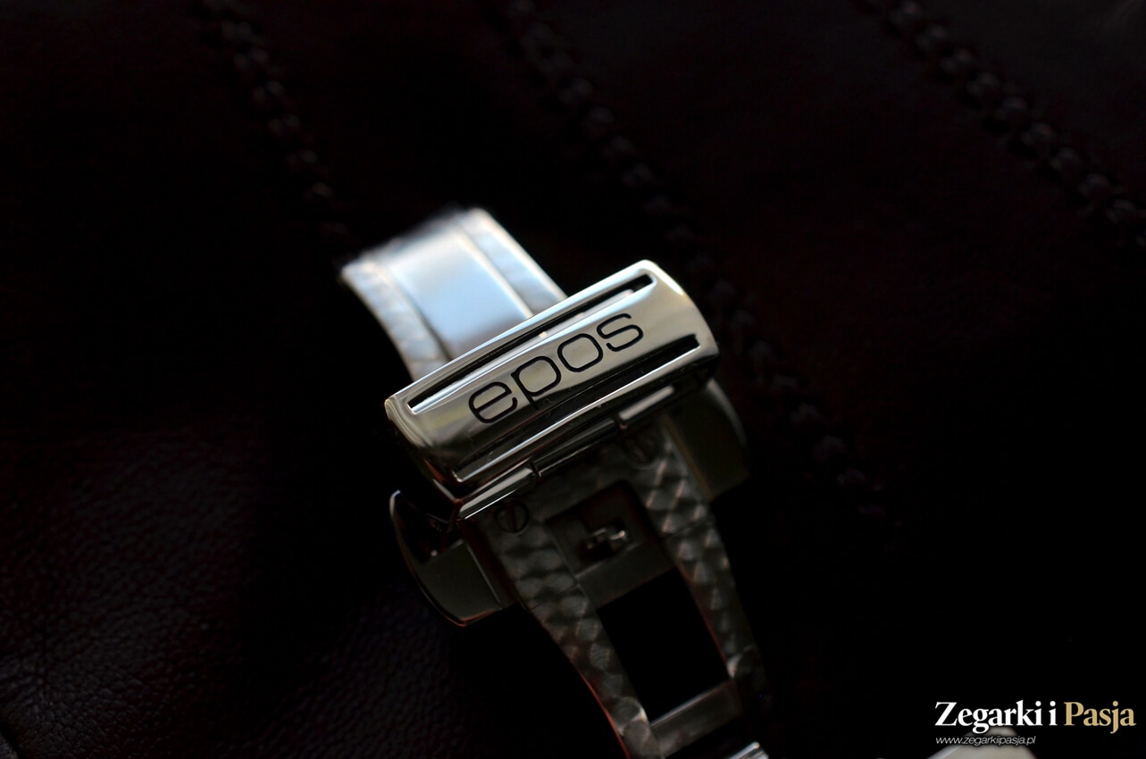 Tarcza jest oprawiona w stalowy polerowany pierścień, którego krawędź wystaje ponad jej powierzchnię. Krzepiący widok dla każdego zegarkomaniaka lubiącego detale, smaczki i niuanse, których w Eposie Verso 2 nie brakuje.