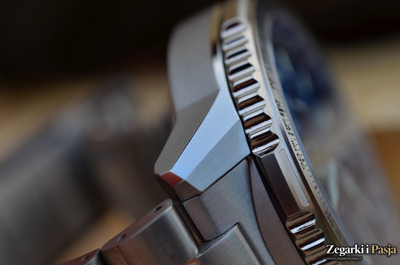 Dodatkowo także dzięki odważnym, ostrym krawędziom i wyrazistym szlifom podkreślającym nowoczesny, techniczny nawet charakter. Wspominając o szlifach mogę podzielić się opinią o jakości ich wykonania. Tytan nie jest metalem łatwym w obróbce - jego polerowanie czy nanoszenie szlifów jest wymagającym zadaniem. Marka Citizen jako pionier w dziedzinie wykorzystania tytanu jest także ekspertem w zakresie jego obróbki. Powierzchnie polerowane są nieskazitelne i pięknie, równomiernie połyskują. Szlify w postaci szczotkowania są bardzo precyzyjne, a krawędzie łączące różnie obrobione powierzchnie wyglądają niemal jak ostrza.