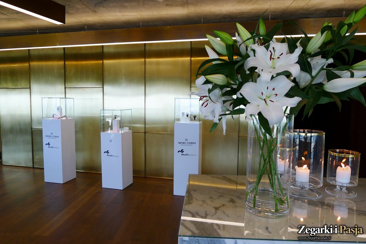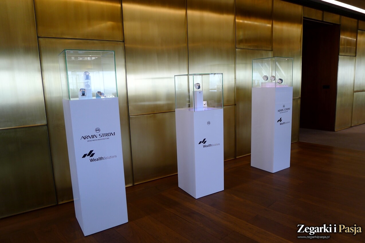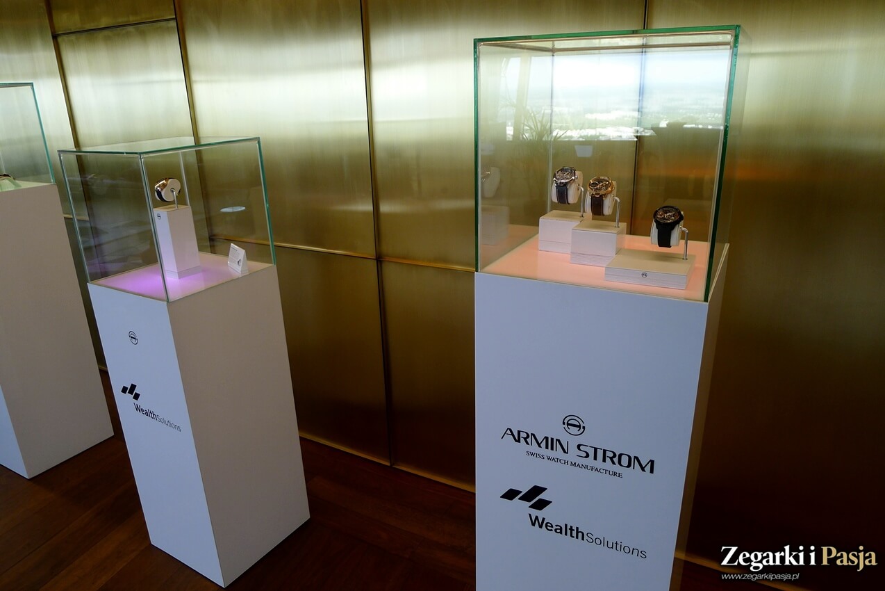 Firma Wealth Solutions, wyłączny dystrybutorem zegarków Armin Strom na polskim rynku, zadbała także o to, aby po części oficjalnej zebrani goście mieli okazję zobaczyć z bliska kilka egzemplarzy zegarków Armin Strom, które wystawione były w specjalnie do tego przygotowanych gablotach. Biorąc pod uwagę relatywnie niewielką liczbę zegarków jakie marka ta tworzy rocznie, oraz ich niszowy charakter i małą dostępność, możliwość zobaczenia ich na żywo stanowiła dużą atrakcję dla zgromadzonych gości.