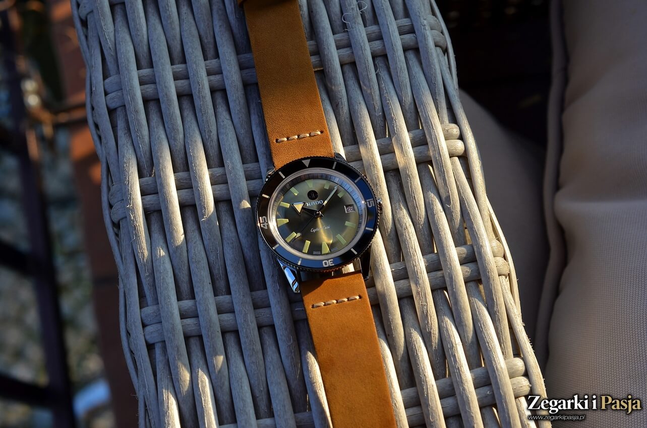 Zegarek Rado Captain Cook Automatic XL Titanium, który testowaliśmy jakiś czas temu, był zbudowany bardzo podobnie i jest bardzo atrakcyjną propozycją, ale dopiero ten dużo mniejszy zegarek, jego proporcje oraz detale powodują, że klimat vintage i duch protoplasty są doskonale widoczne. Im dłużej z nim obcowałem tym mniej przeszkadzał mi relatywnie niewielki rozmiar koperty. Sam pomysł odzwierciedlenia nie tylko ogólnego wizerunku dawnego zegarka, ale i jego ówczesnych wymiarów dziś, w dobie mody na zegarki duże, było posunięciem ryzykownym i odważnym, ale efekt końcowy jest dzięki temu niemal pozbawiony wad, a zegarek jest jedną z ciekawszych pozycji na rynku.