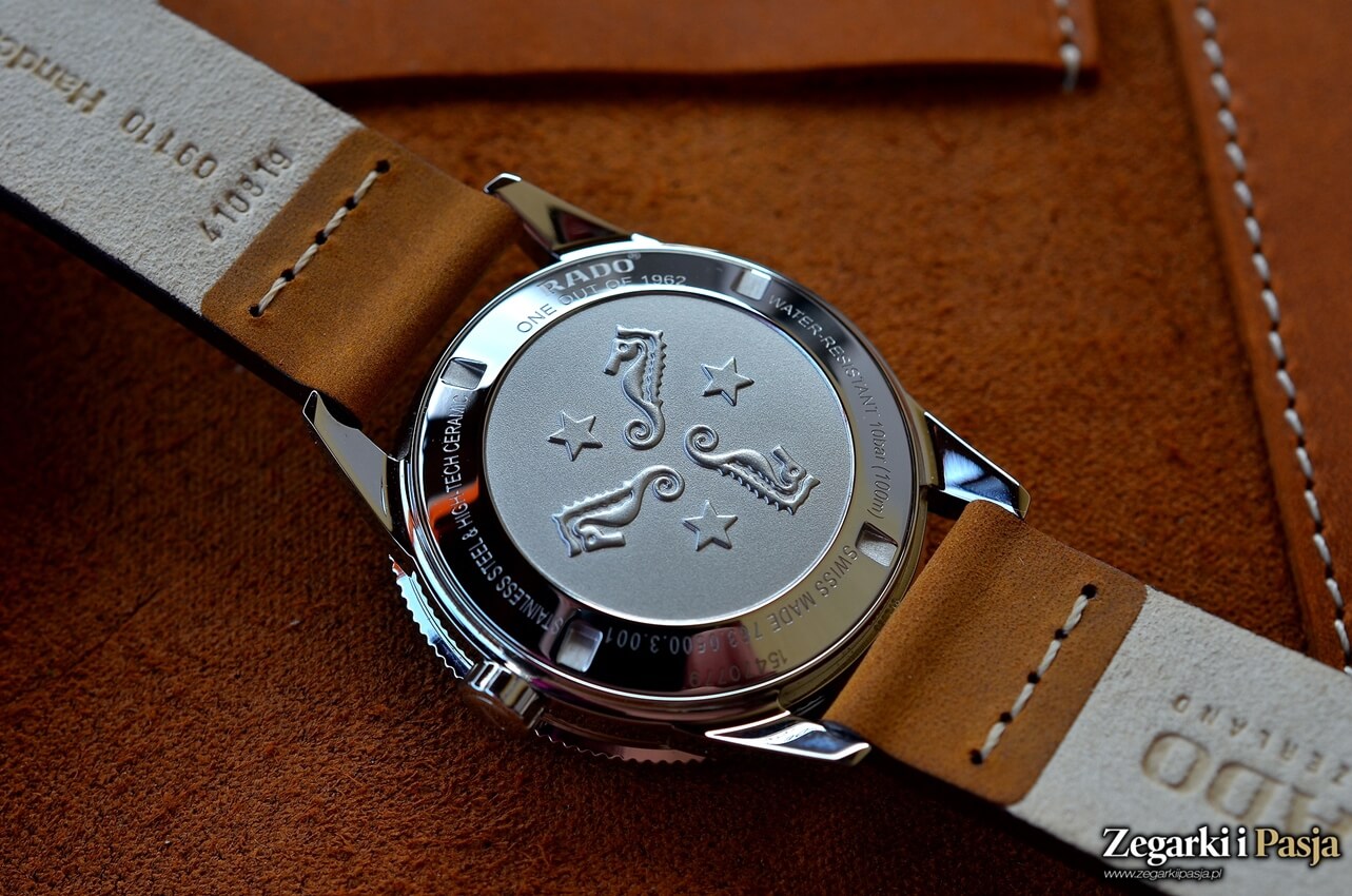 O ile dobrze pamiętam wygląd oryginału, to tam dekiel wyglądał nieco inaczej, bo koniki były dwa i zamieszczono jeszcze napis „water sealed”. Jak wspomniałem, nowy model Rado Tradition Captain Cook Automatic jest limitowany do 1962 egzemplarzy. Jednak sam limitacja nie jest jedyną atrakcją tej specjalnej wersji.