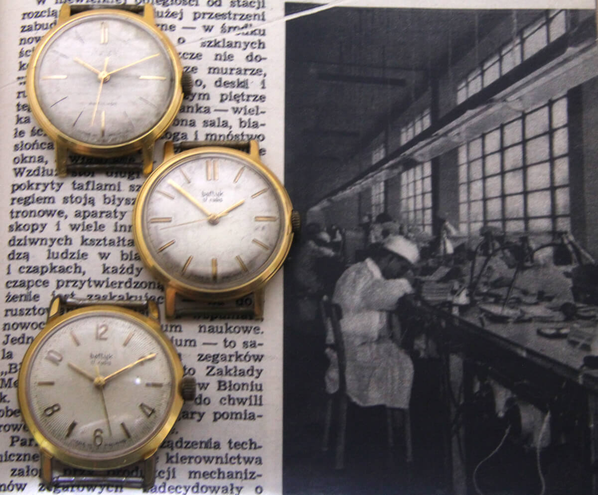 W dniu 24. października 1959 roku z taśmy montażowej Zakładów Mechaniczno-Precyzyjnych Błonie, w Błoniu pod Warszawą zeszły pierwsze i dotychczas jedyne, produkowane seryjnie w Polsce zegarki mechaniczne. Te początkowe, oznaczone marką Błonie miały mały napis: „LICENCJA ZSRR”, ale w każdych kolejnych prezentowany był dumnie nasz swojski napis: „MADE IN POLAND”.