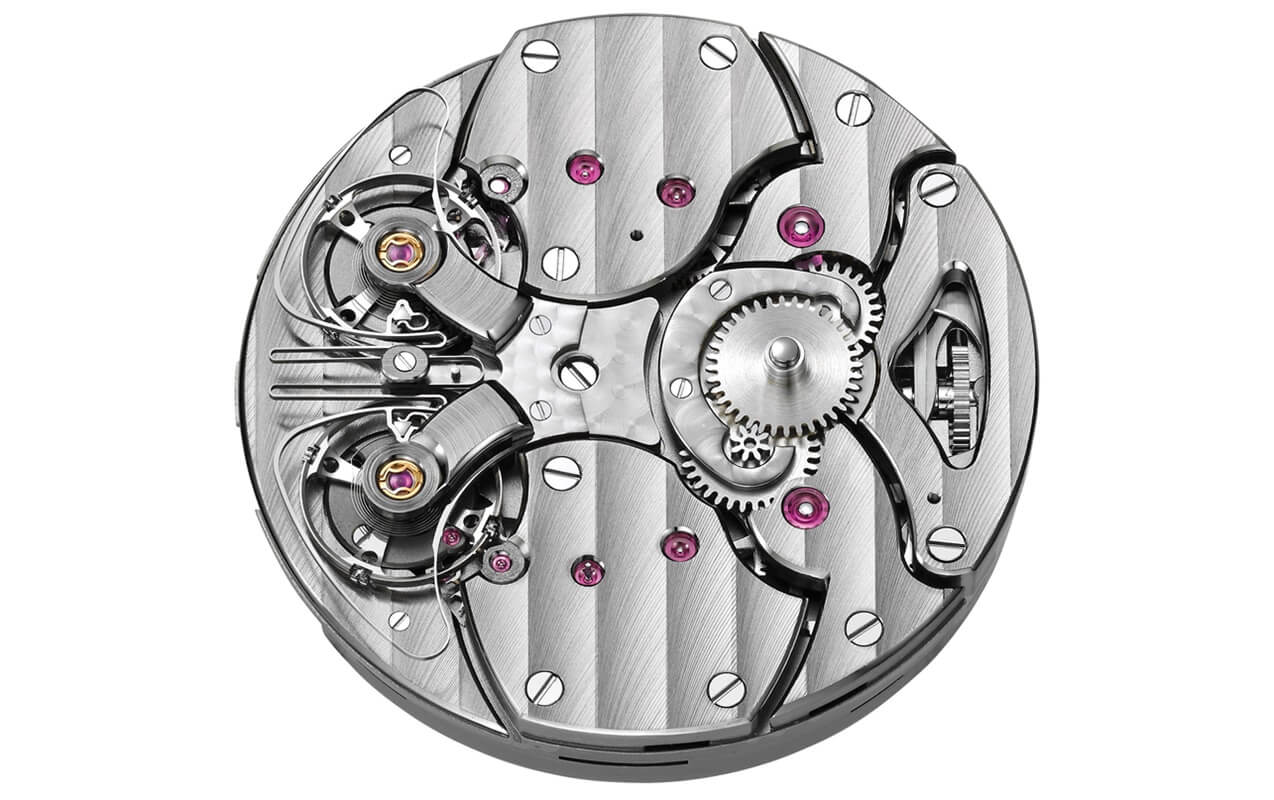 Oprócz efektu wizualnego benefitami rozwiązania w postaci rezonansu dwóch połączonych ze sobą stalową sprężyną układów są poprawiona stabilność oraz precyzja chodu. Zdobienie pasami Côtes de Genève, to niemal standard, nawet w wyrobach z niższego segmentu cenowego, ale jego walory estetyczne są niepodważalne. Nadal jest to „wisienką na torcie”, bez której mechanizm nie byłby tak urodziwy. Zwłaszcza, że w tym przypadku pasy wykonano z dodatkowym żłobkowaniem, a same mostki są w kolorze określanym często jako gun-metal. Nietypowa jest za to częstotliwość pracy mechanizmu na poziomie 25 200 wahnięć na godzinę.