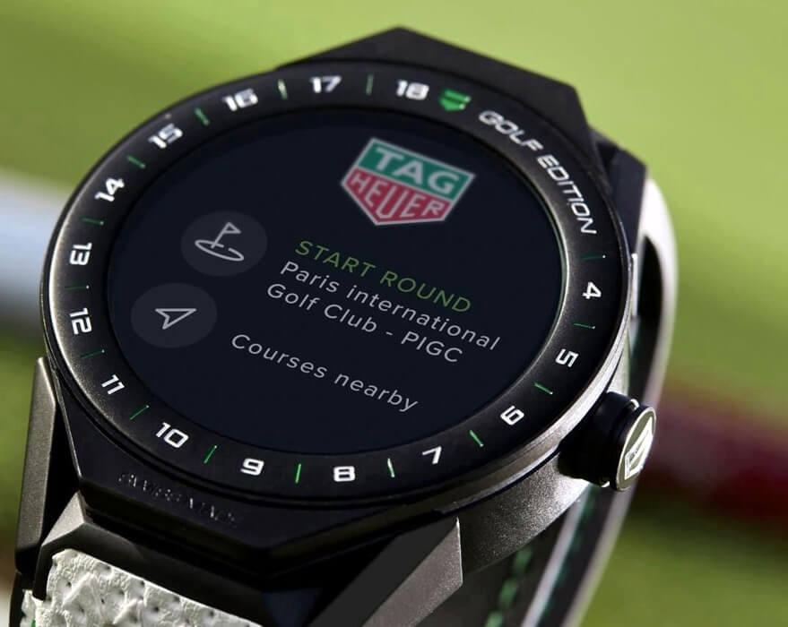 Model TAG Heuer Connected Golf Edition pod kątem swojego przeznaczenia dla miłośników golfa jest wyposażony w imponującą aplikację golfową TAG Heuer z ponad 39 000 mapami pól golfowych z całego świata, wpisanymi do jej zasobów.