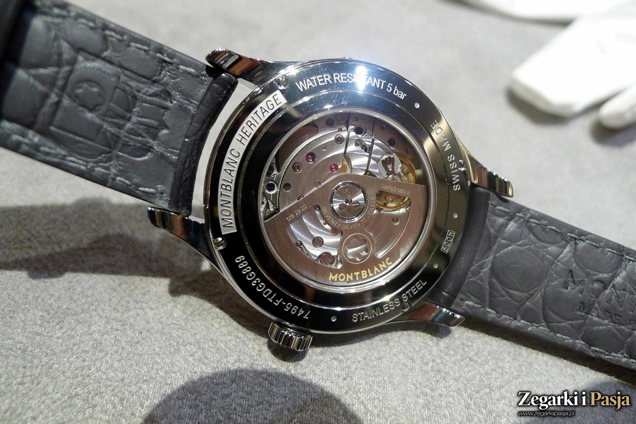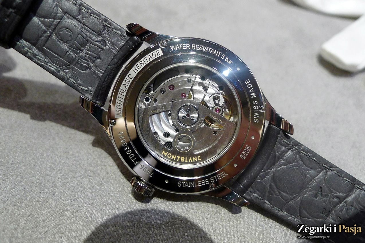 Montblanc Heritage Perpetual Calendar wyposażony jest w zupełnie nowy mechanizm własnej produkcji marki Montblanc - kaliber MB 29.22. Mechanizm ten wskazuje godziny, minuty, dzień, datę, miesiąc, fazy Księżyca i rok przestępny. Wszystkie te wskazania znajdziemy na tarczy, która zapewnia doskonałą czytelność dzięki temu, że małe tarcze na 3, 6 i 9 godzinie są relatywnie dużej średnicy. Mechanizm o automatycznym naciągu sprężyny napędowej, pracujący z częstotliwością 28 800 wahnięć balansu na godzinę i gwarantujący 48 godzin autonomii chodu, składa się wyłącznie z kół, w przeciwieństwie do większości innych mechanizmów z wiecznym kalendarzem, które mają także dźwignie i krzywki.