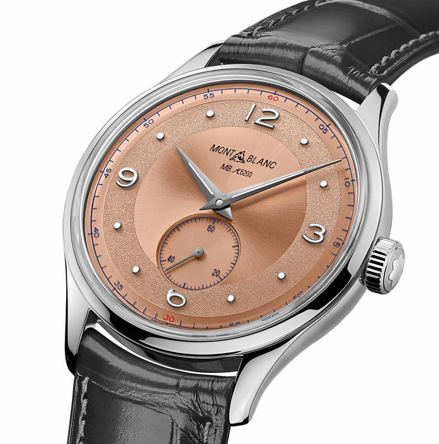 Jak doskonale wiemy, firma Minerva - a w zasadzie jej spuścizna - jest teraz pod skrzydłami marki Montblanc, która może korzystać z jej bogatej historii. Nowy model z piękną tarczą to Heritage Small Second Limited Edition 38. Atrakcyjny zegarek posiadający historyczny mechanizm Minerva, oraz tarczę właśnie w stylu vintage w kolorze łososiowym.