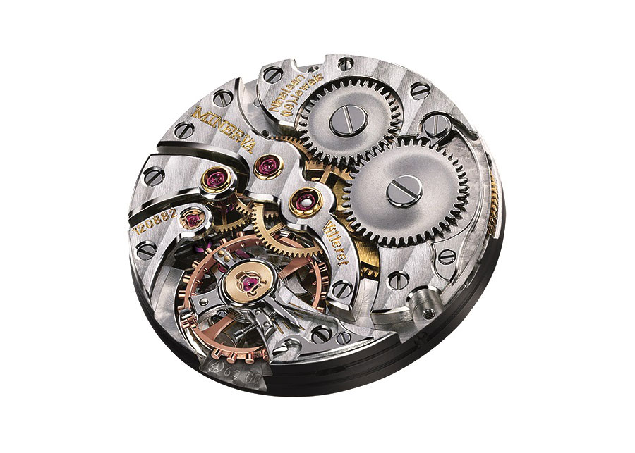 Ikoniczną strzałę Minervy można również znaleźć jako grawer na płycie głównej. Widok tego ręcznie nakręcanego mechanizmu ujawnia wysoki poziom wykończenia wymagający doświadczenia, umiejętności i zręczności.