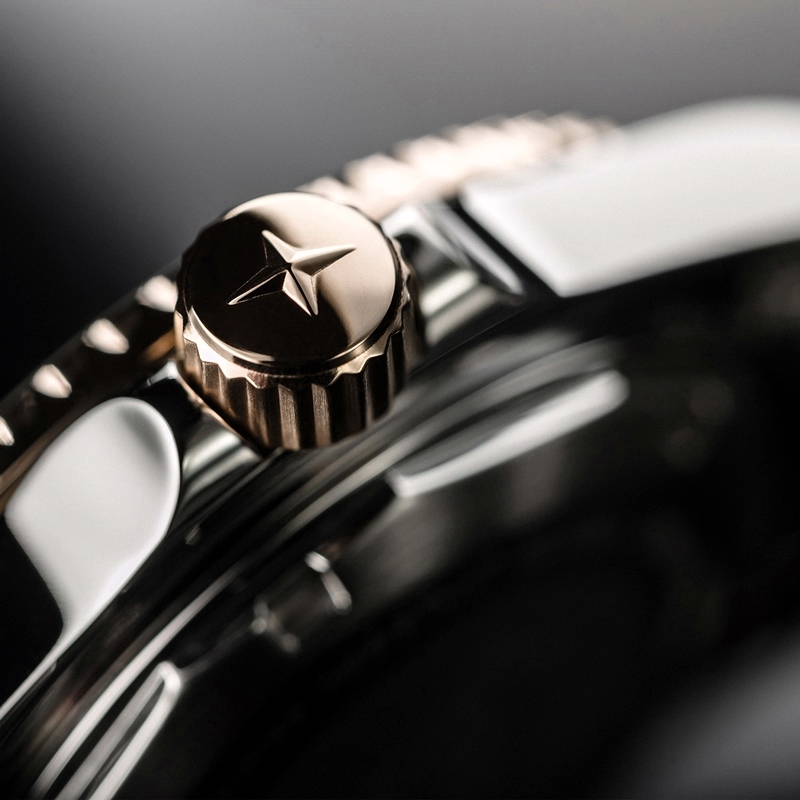 Nowa wersja Ternos Ceramic Automatic posiada powłokę PVD. Użyto jej do nadania koloru indeksom, wskazówkom, lunecie, koronce oraz środkowemu rzędowi ogniw bransolety. To uczyniło z tego na wskroś sportowego zegarka opcję nieco bardziej uniwersalną, bo kolor różowego złota nadał nieco elegancji. Zegarek przy okazji bardziej przyciąga wzrok.