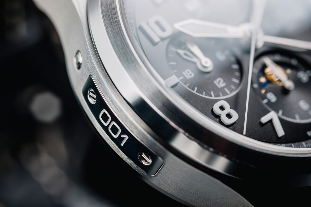 Stalowa koperta tego skomplikowanego pod względem technicznym zegarka jest dość spora. Średnica to 44 mm a grubość 14 mm. Biorąc pod uwagę klasyczny wzór obudowy z łagodnie wypuszczonymi, ale zagiętymi w dół uszami, jest szansa, że dopasujemy go do wielu nadgarstków, w tym tych nieco szczuplejszych.