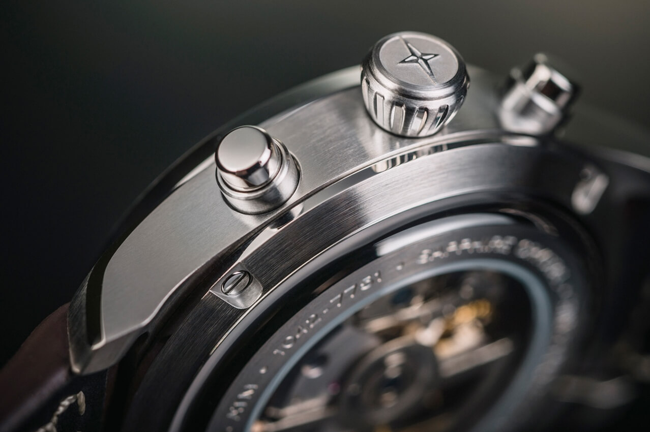 Po prawej stronie koperty, w tradycyjnym ułożeniu, znajduje się całe „centrum sterowania” zegarkiem, umożliwiające obsługę jego funkcji dodatkowych.