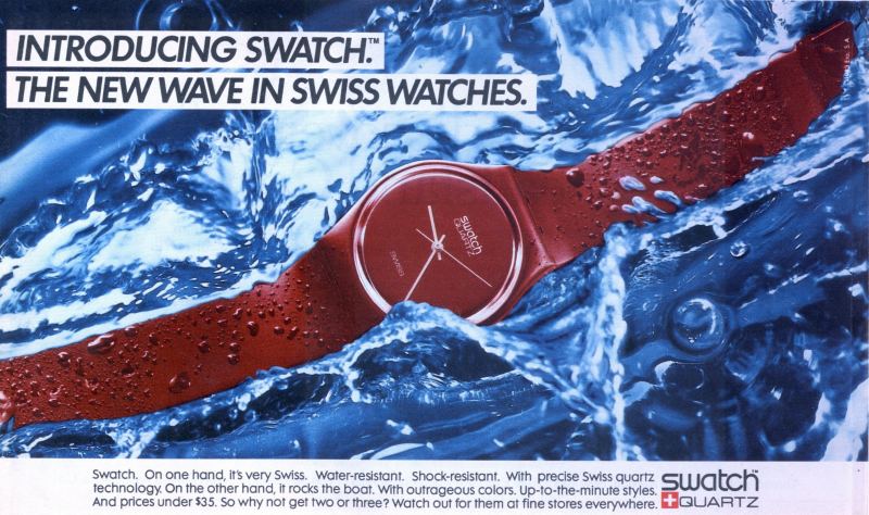 Próby powrotu na zegarkowy rynek szwajcarscy producenci podjęli ponownie w czasie, gdy w znacznie większych ilościach zaczęły pojawiać się zegarki elektroniczne ze wskazówkami. Wskazywanym obecnie przez wiele osób jako sztandarowy oręż w tej walce o odzyskanie wpływów był projekt zegarka Swatch.