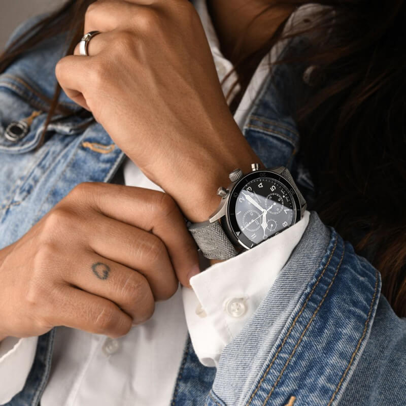 W wypadku tego zegarka postawiono na tytan. Jego szczotkowane powierzchnie mają przyjemny szary kolor. Tytan jest także miły w dotyku, i ma właściwości pozwalające na użytkowanie przez osoby mające uczulenie na stal.