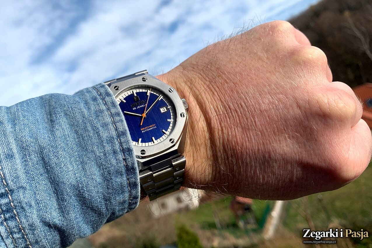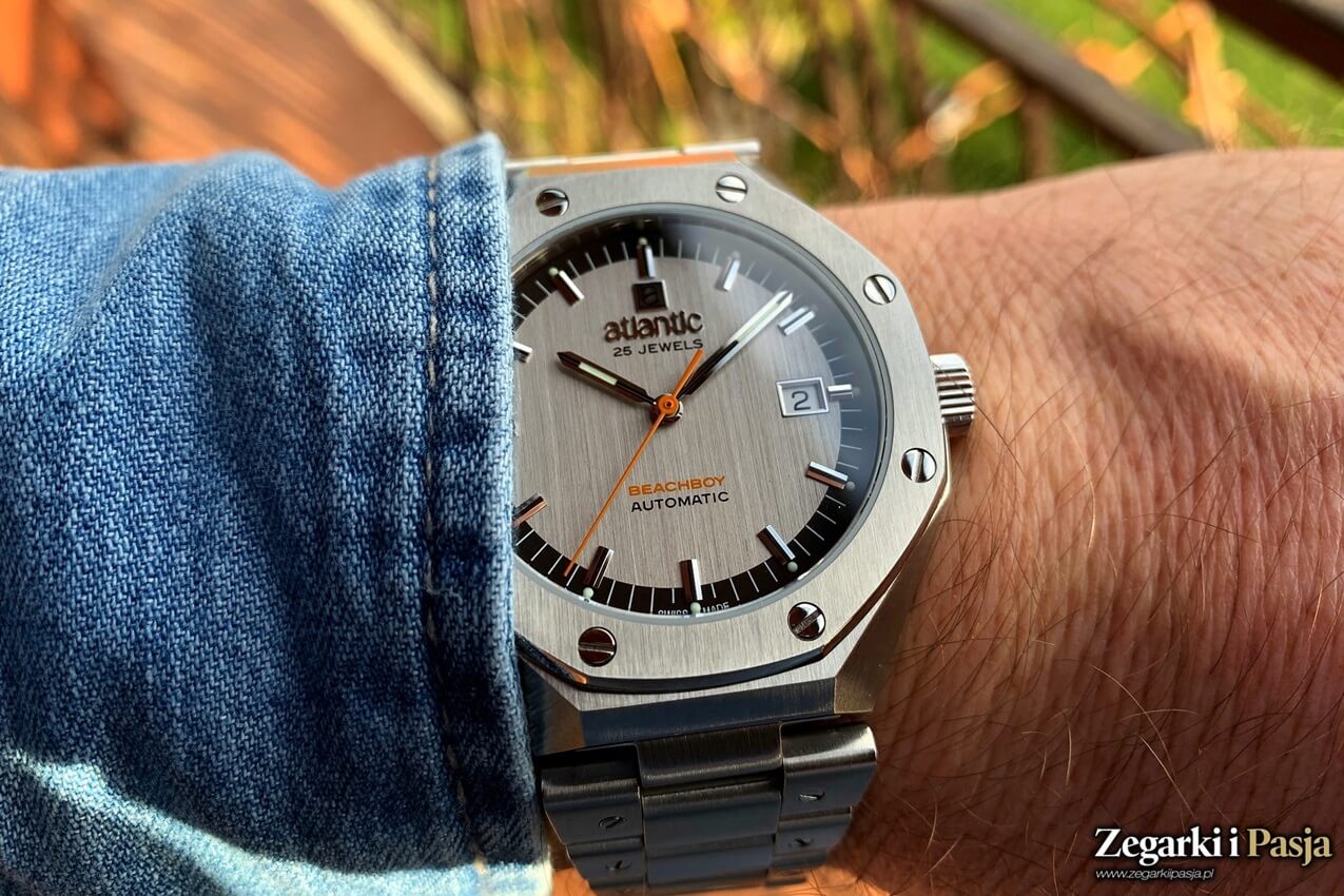 Atlantic Beach Boy jest także doskonale czytelny, bo tarcza wraz z zestawem wskazówek mają formę oszczędną, mimo wspomnianych detali. Świetnie wyglądająca i wygodna bransoleta jest dopełnieniem. Moim zdaniem warto było wziąć pod uwagę opcję z pełnym deklem, ale przeszklenie nie jest na tyle istotne, by zniwelować ogólne, pozytywne wrażenie.