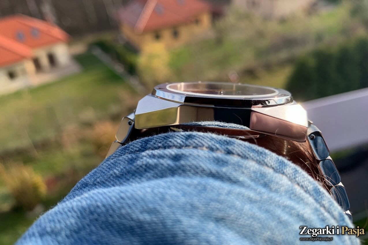 W odróżnieniu od wersji z lat 70., koperta współczesnego zegarka ma dwa rodzaje wykończenia w postaci szczotkowania jak i polerowania. Dzięki temu, na styku powierzchni uzyskano wyraźne, ostre linie pogłębiające od początku odczuwane wrażenie wysokiej jakości wykonania. Kopertę wykonano z dużą starannością, widziałem wiele zdjęć, a teraz mogę potwierdzić osobiście, że tak lubiane przez mnie linie styku są perfekcyjne, szlify równe i dokładne, a wszelkie detale dopieszczone.