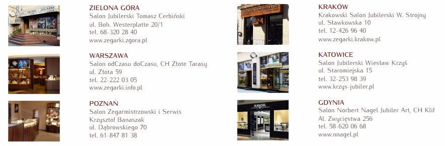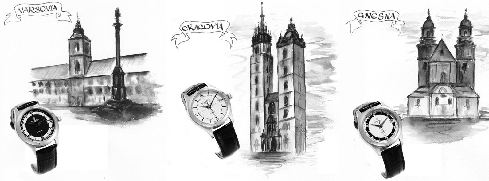 Warto także zaznaczyć – że trzy modele zegarków noszące łacińskie nazwy stolic Polski: Gnesna, Cracovia, Varsovia zaprezentowane były równocześnie w trzech miastach: Poznaniu, Krakowie i Warszawie.
