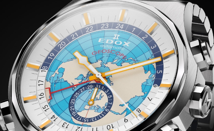 Zaprezentowany w 1971 roku przez firmę Edox zegarek noszący nazwę Geoscope był pierwszym na świecie czasomierzem z funkcją odczytu wskazań czasu dla wszystkich 24 stref czasowych, potocznie zwanym „Worldtimerem”. Zegarek od razu wzbudził wielkie zainteresowanie i stał się przedmiotem pożądania kolekcjonerów tego pięknego rzemiosła. Centralnie umieszczona, kolorowa mapa świata widziana od strony bieguna południowego od razu przykuwała wzrok. Wewnętrzny pierścień wskazywał podział dla wszystkich dwudziestu czterech stref czasowych. Wskazówki robiły pełen obrót dokoła swojej osi w ciągu jednej doby. Warto również wspomnieć, że zegarek posiadał funkcję drugiej strefy czasowej GMT oraz wskaźnik pozycji słońca. Całość umieszczono w zgrabnej kopercie o rozsądnej, jak na tamte czasy średnicy 42mm.