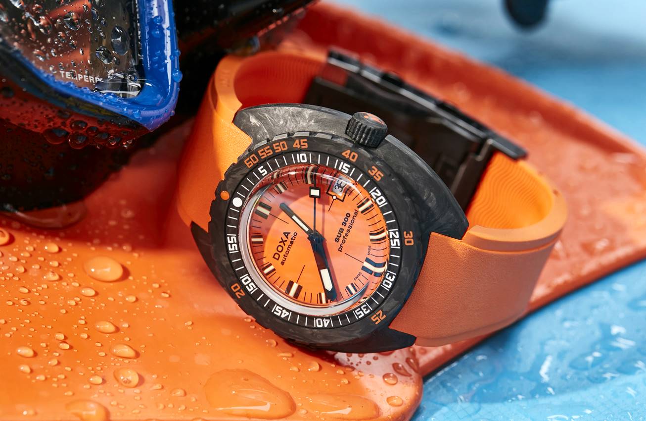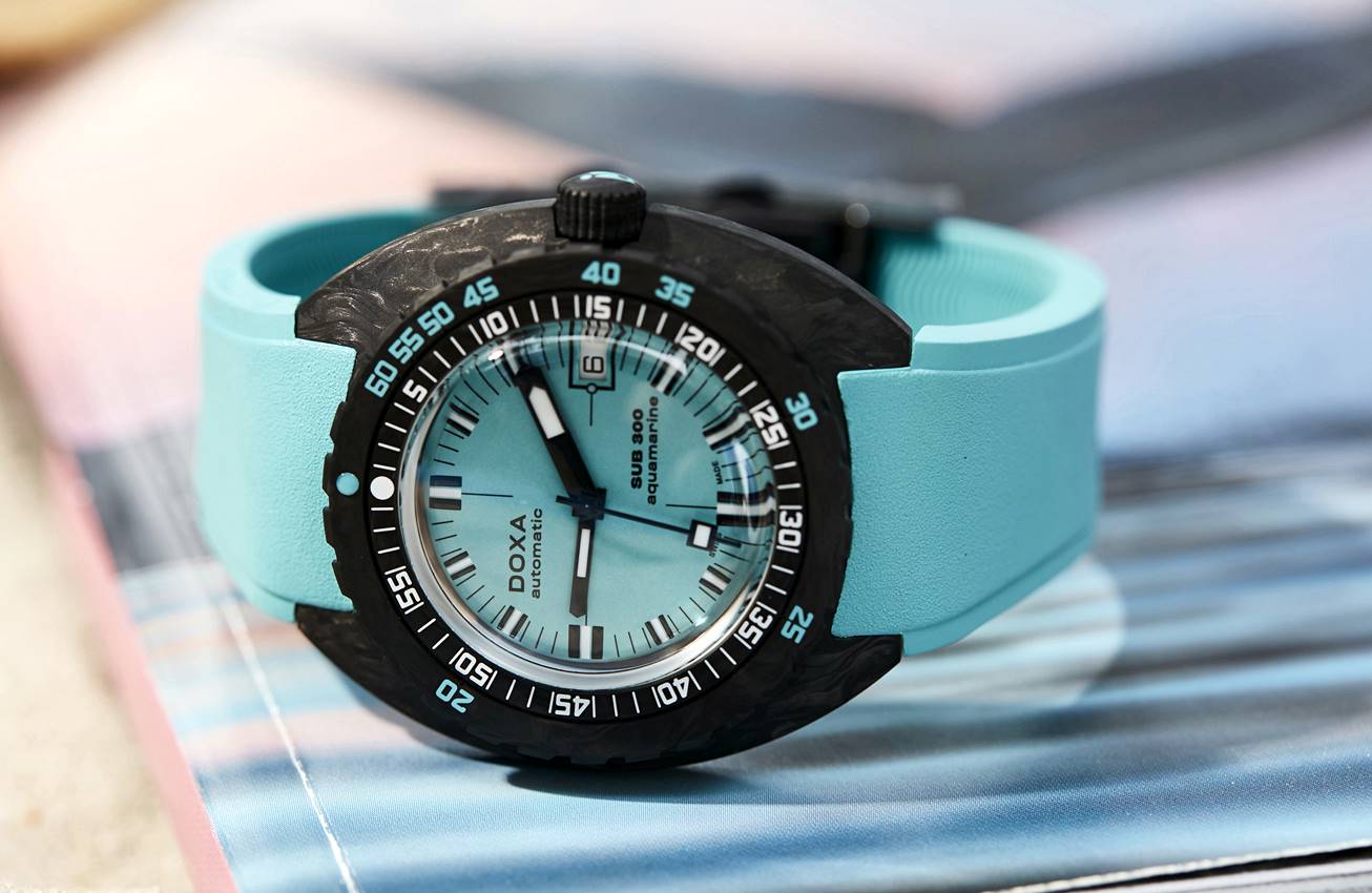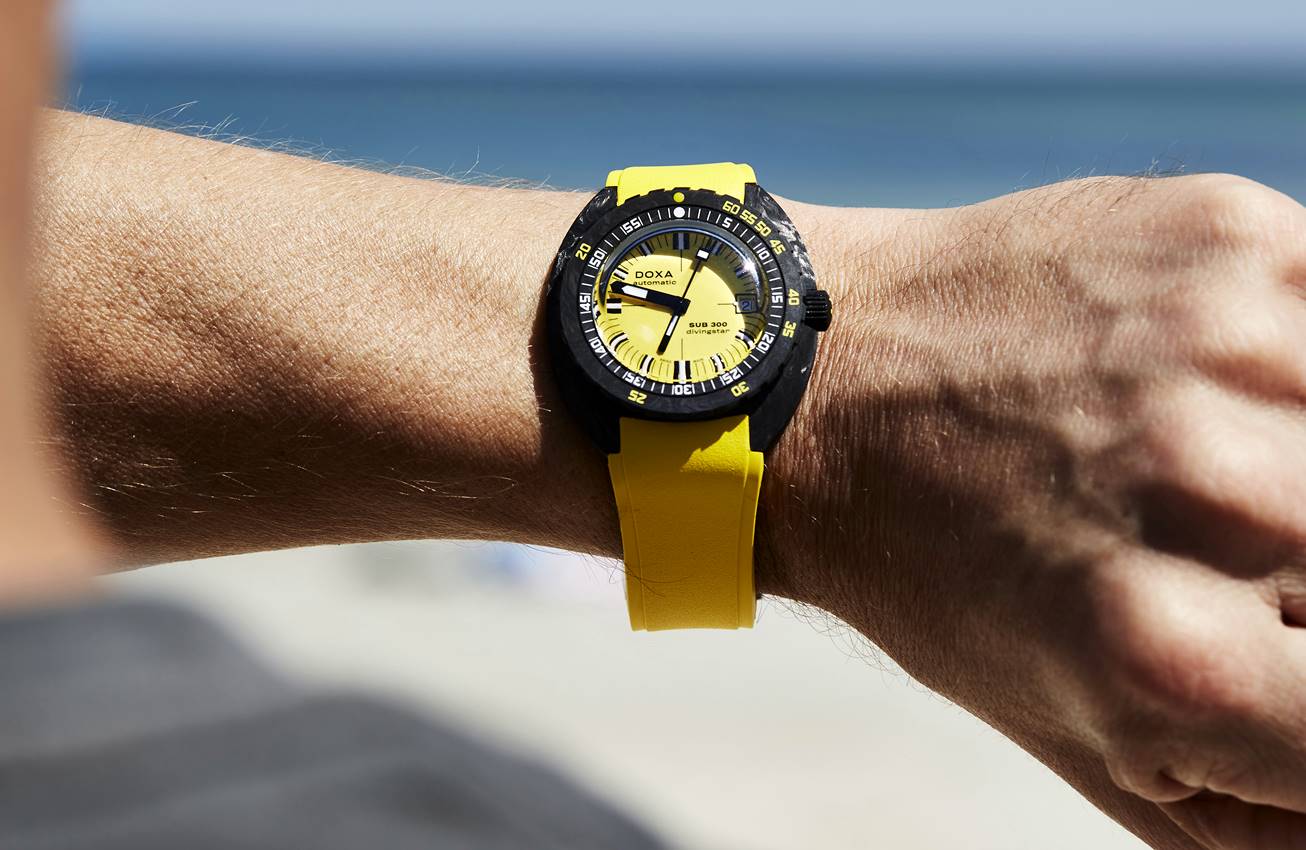 W szortach lub w kombinezonie do nurkowania, nowe kolorowe zegarki z serii Sub 300 Carbon COSC faktycznie sprawdzą się doskonale. Dodatkowo, poza kolorowymi tarczami, szwajcarska marka oferuje również gumowe paski nie tylko w kolorze czarnym, ale także i w kolorach pasujących do tarczy. Dostępne jest 6 kolorów dających 10 wersji - turkusowy, żółty, granatowy, szary, czarny, no i oczywiście najsłynniejszy „DOXA Orange Professional”.