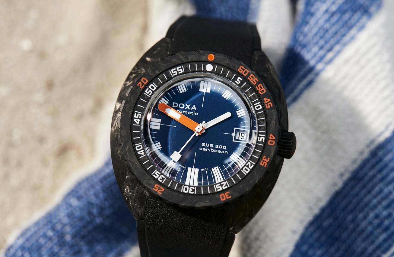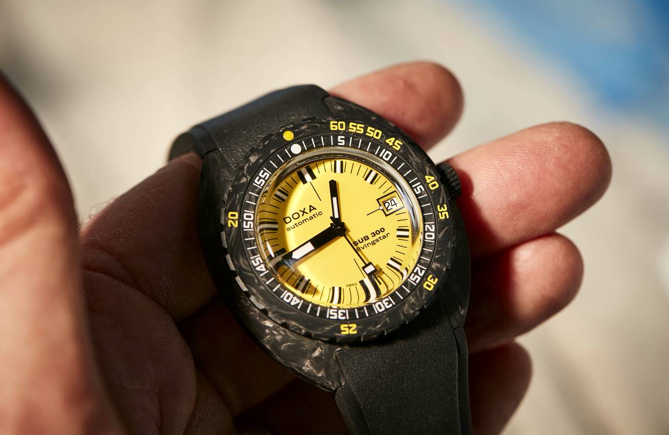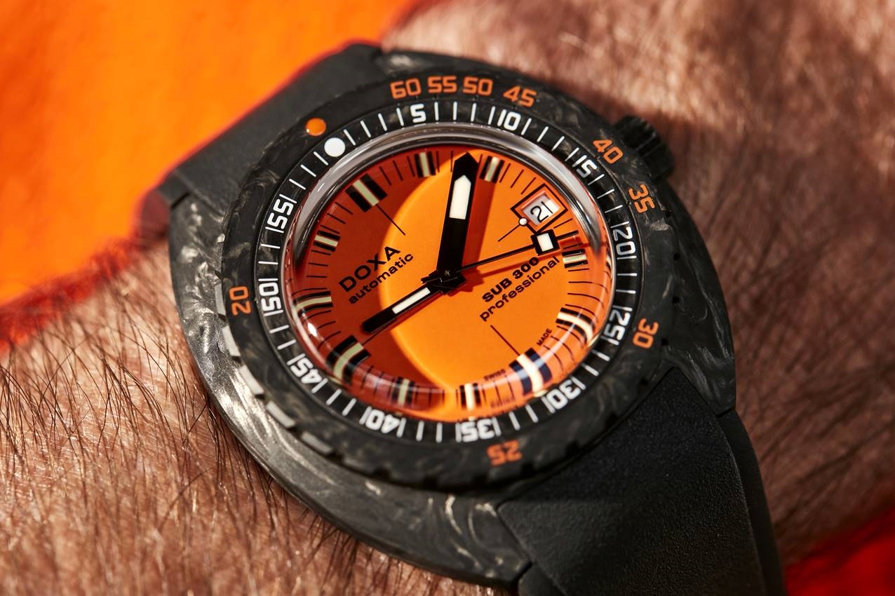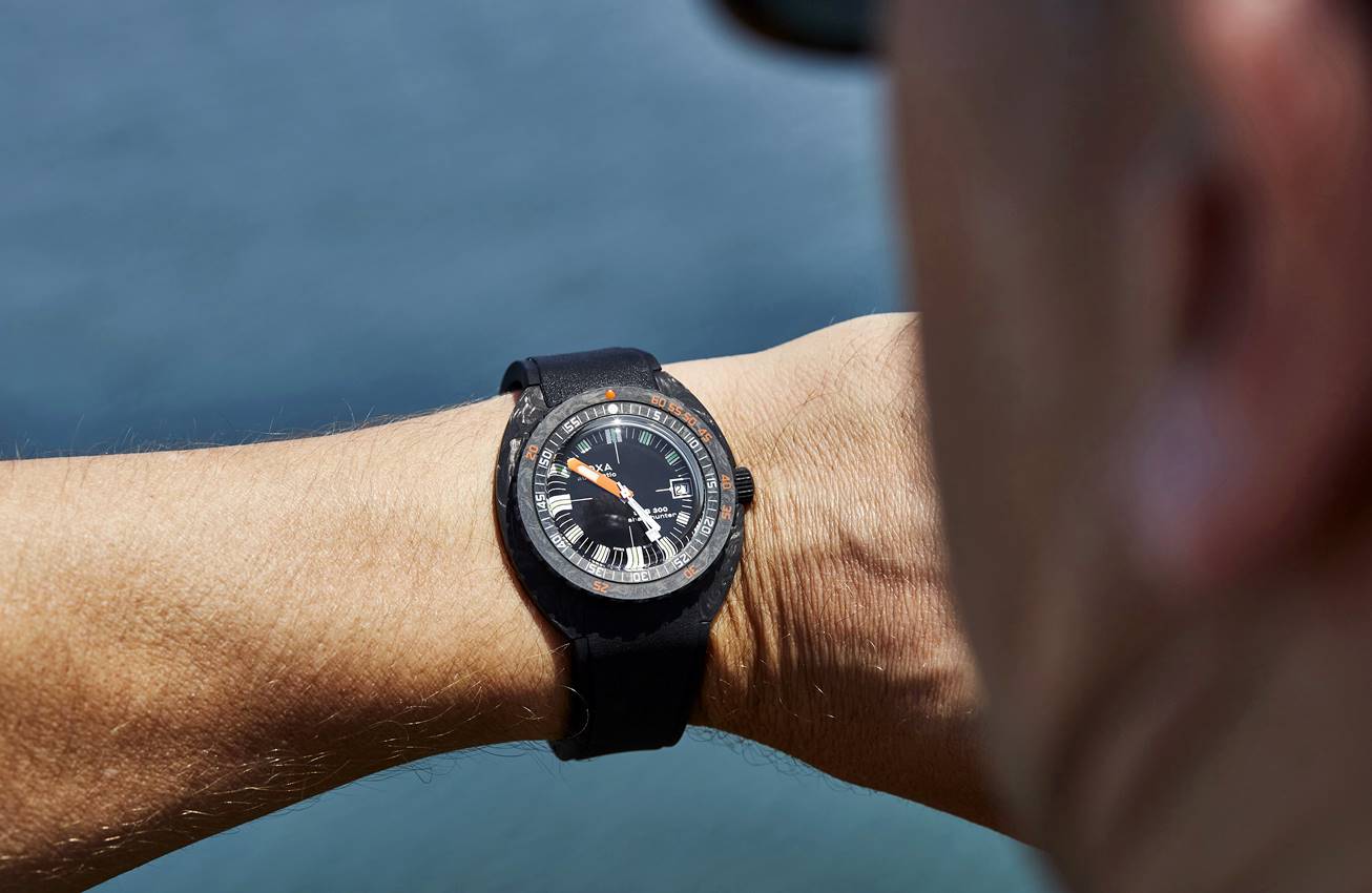 Kute włókno węglowe, czyli techniczny, nowoczesny materiał o wielu zaletach i świetnym wyglądzie, wydaje się być idealnym rozwiązaniem dla zegarków Doxa SUB.