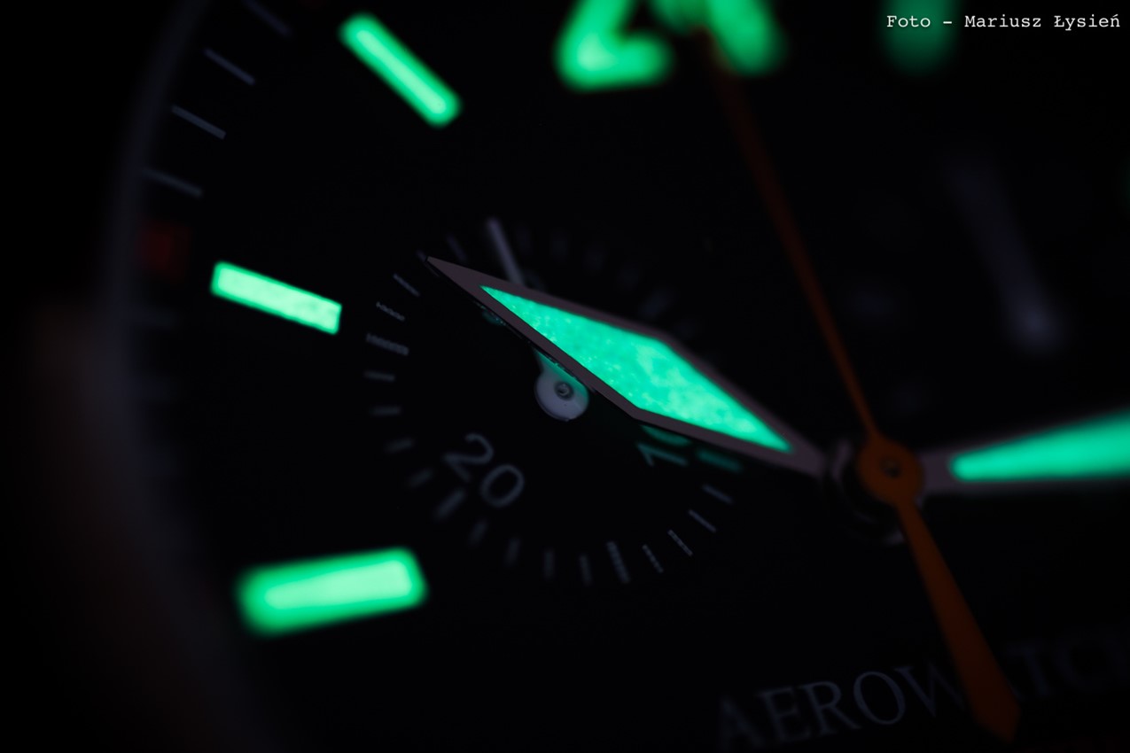 Szerokie wskazówki o kształcie mocno spłaszczonych rombów są doskonale widoczne na tle tarczy, a i w ciemności - dzięki obfitemu wypełnieniu ich ramion masą luminescencyjną - odczyty powinny być łatwe.