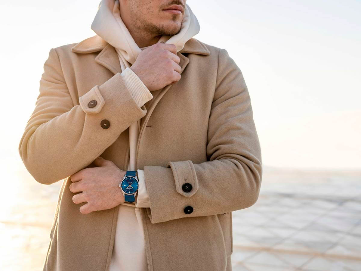 Zacznę od wersji z hipnotyzująco niebieską tarczą i szlifem słonecznym. To bardzo atrakcyjny kolor, który świetnie pasuje do stylu tego zegarka. Niebieski jest barwą, z którą doskonale współgrają detale w kolorze złocistym i tak właśnie zrobiono w tym przypadku.