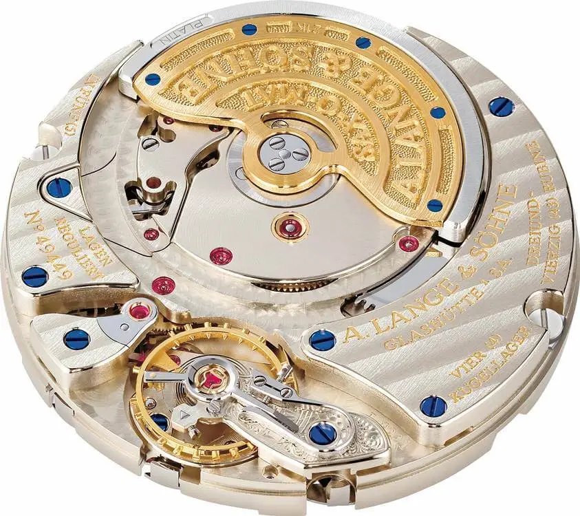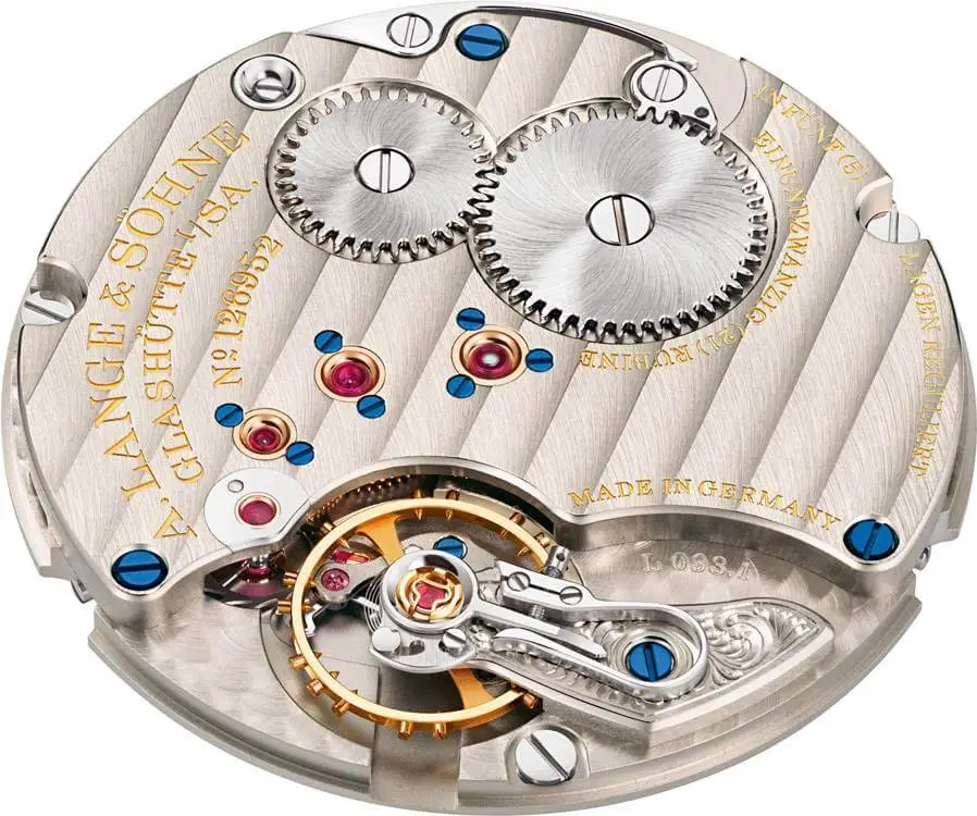 Ręcznie nakręcany mechanizm A. Lange & Söhne kaliber L042.1 ma beczkę sprężyny głównej, która zapewnia rezerwę chodu na poziomie 120 godzin. To zegarmistrzowskie arcydzieło składa się z 370 części, z których 84 to elementy związane z wykonaniem filigranowej klatki tourbillonu, który waży tylko ćwierć grama.
