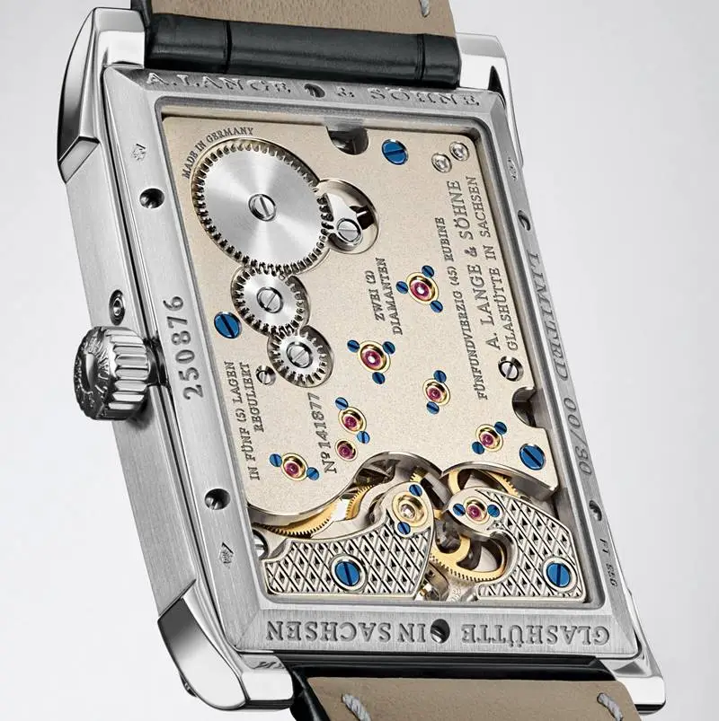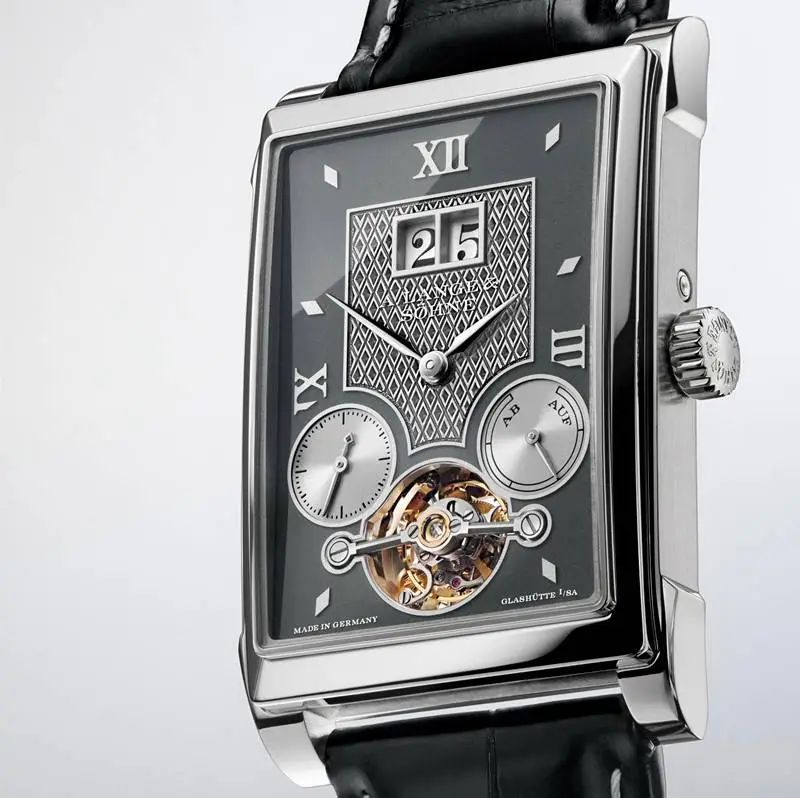 Zegarek w tej wersji oparty jest na jedynym prostokątnym modelu Lange, czyli Cabaret, będący w ramach bardzo klasycznej oferty modelem wręcz ekstrawaganckim.