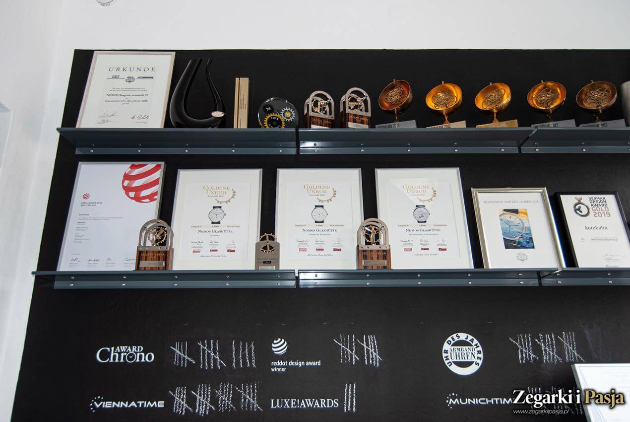 W sumie marka Nomos zdobyła już ponad 150 nagród. Związane z niektórymi z nich statuetki i dyplomy można podziwiać na półkach przy tej “rozpisce”.