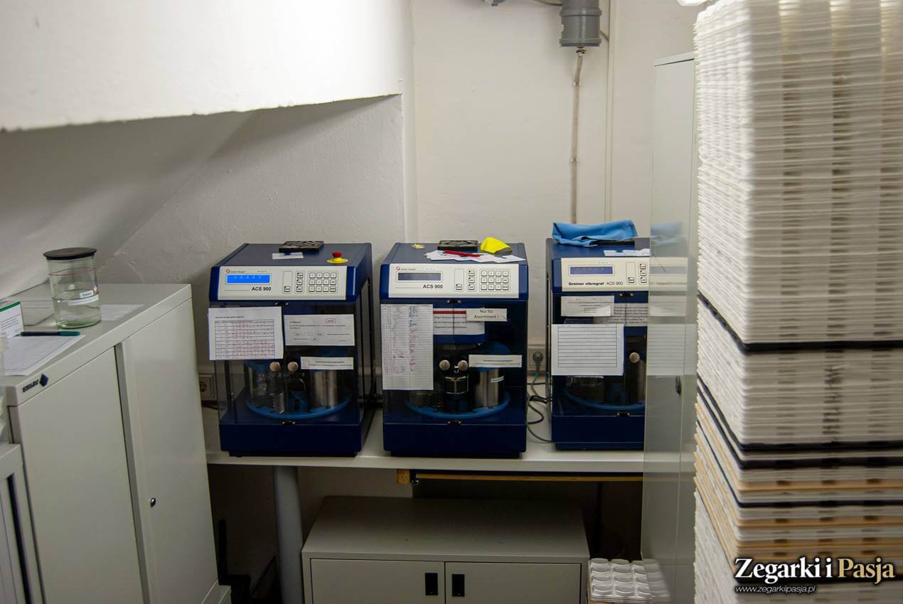 Po drodze mijaliśmy również pokój czyszczenia. Jak sama nazwa wskazuje, tutaj w maszynach czyszczeniu poddawane były różne elementy zegarka.