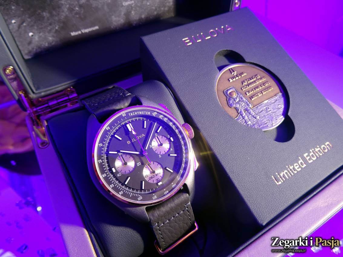 „Księżycowy” czasomierz marki Bulova otrzymujemy wraz z pamiątkową monetą i specjalnym opakowaniem oraz z książką opisującą sukces misji Apollo.