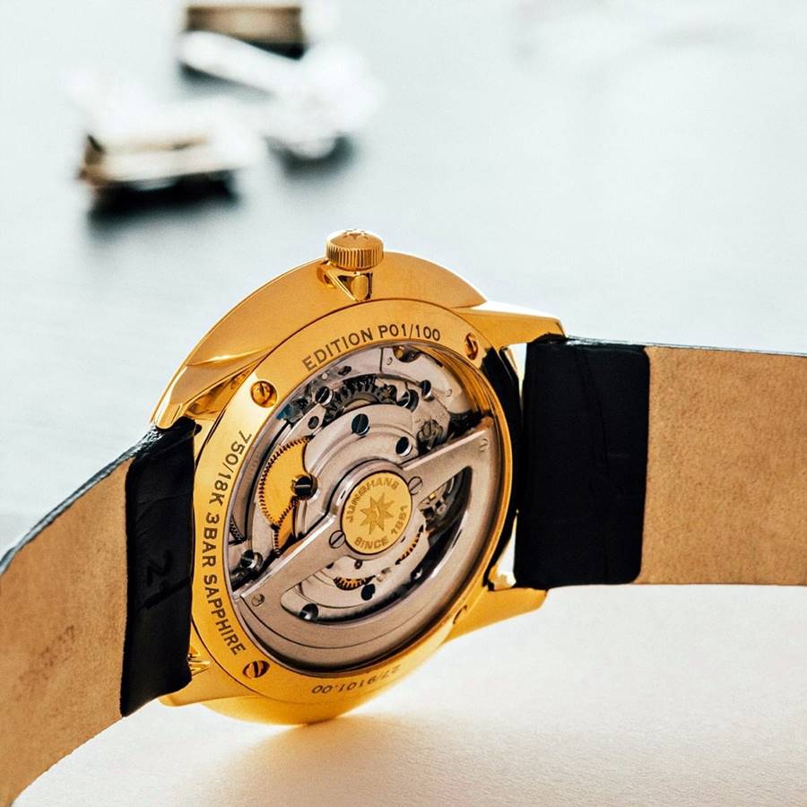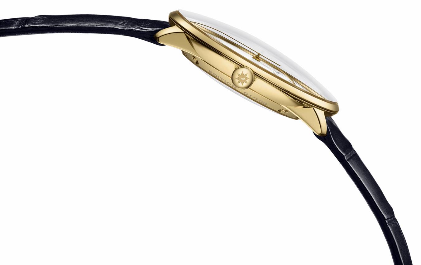 Żółte złoto to z jednej strony blask prestiżu, ale z drugiej to ciepła i elegancka barwa obudowy, bardzo dobrze współgrająca z prostą formą i eleganckim charakterem tego zegarka. To bardzo udane połączenie minimalistycznej i eleganckiej klasyki z innowacyjnym językiem formy oraz drogocenną kopertą, podkreślającą ważność modelu, jak i całej linii w ofercie marki Junghans. W przypadku tego wyjątkowego zegarka dodatkowo zdecydowano się na limitację do 100 sztuk, co jeszcze podnosi jego atrakcyjność.