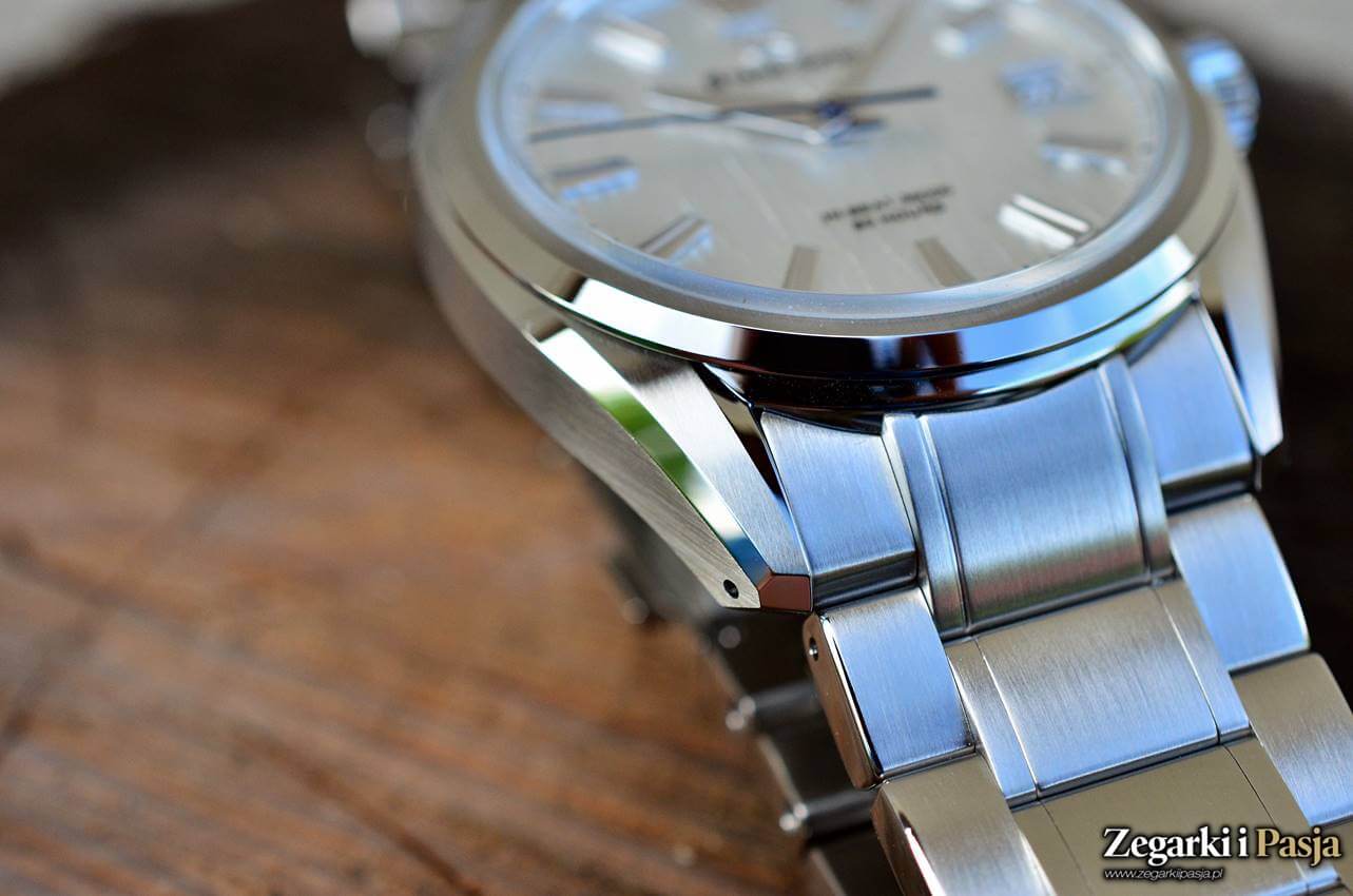 Namawiając każdego do samodzielnego sprawdzenia, nie oprę się jednak, by wspomnieć o bardzo precyzyjnie szczotkowanych powierzchniach czy ostrych krawędziach, w jakie koperta recenzowanego zegarka obfituje. Te ostatnie są prawie tak ostre jak samurajski miecz. Powierzchnie ustawione wobec siebie skośnie są obrabiane w odmienny sposób, a ich łączenie to właśnie wyraziste krawędzie. Części polerowane są wykończone znaną już w naszym gronie techniką Zaratsu. Wykorzystywana przez Seiko zapewnia ponadprzeciętną gładkość i równość wypolerowanych powierzchni.