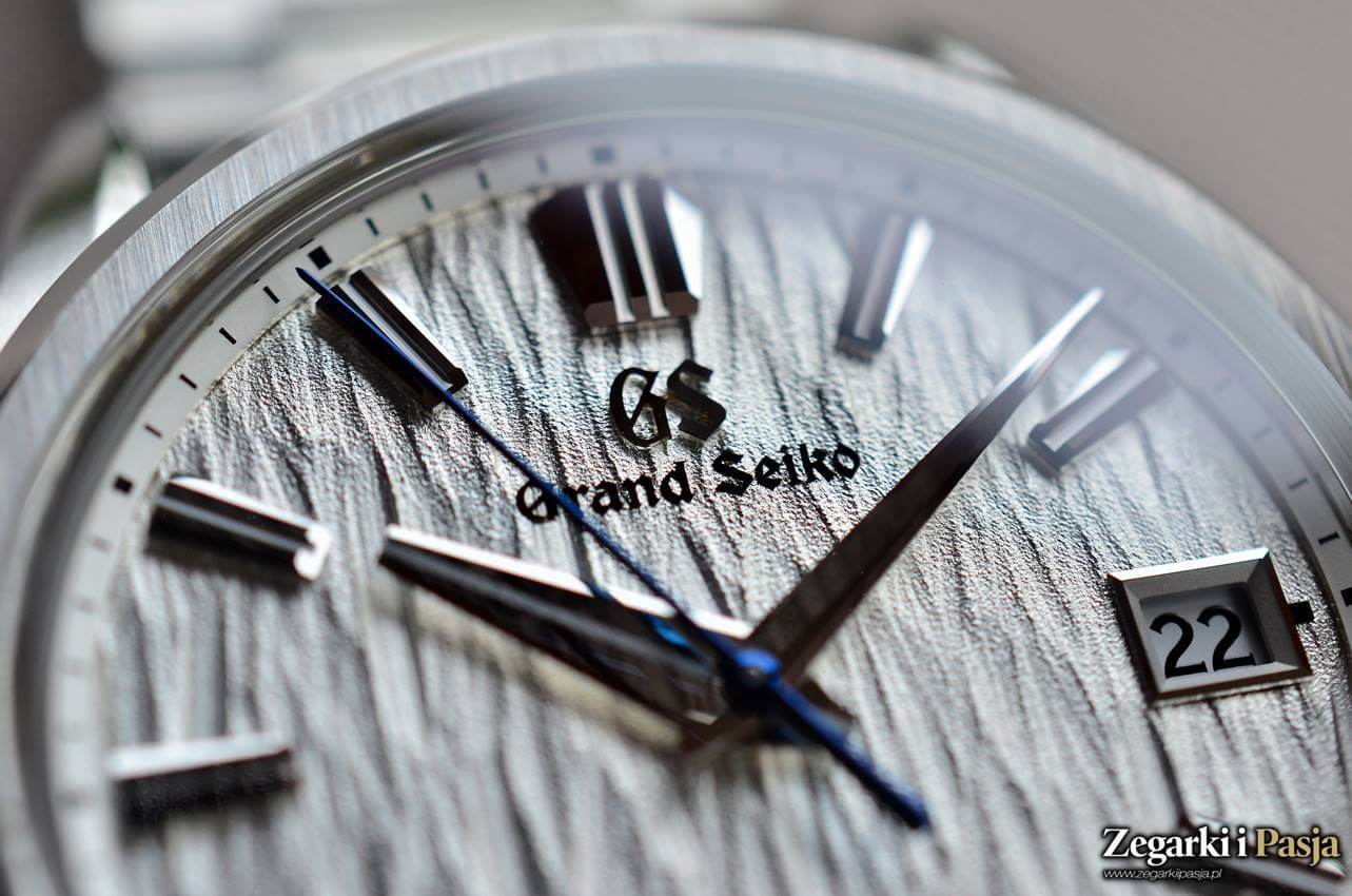 W Grand Seiko każdy indeks jest niemal dziełem sztuki i robi na oglądających ogromne wrażenie. Kolejne do podziwiania są wskazówki o kształcie będącym ewolucją stylu dauphine – są dość szerokie, a ich górne powierzchnie oraz fasetowane krawędzie boczne wypolerowano na wysoki połysk. Dzięki temu wskazówki wyglądają niesamowicie w zestawieniu ze strukturą tarczy.