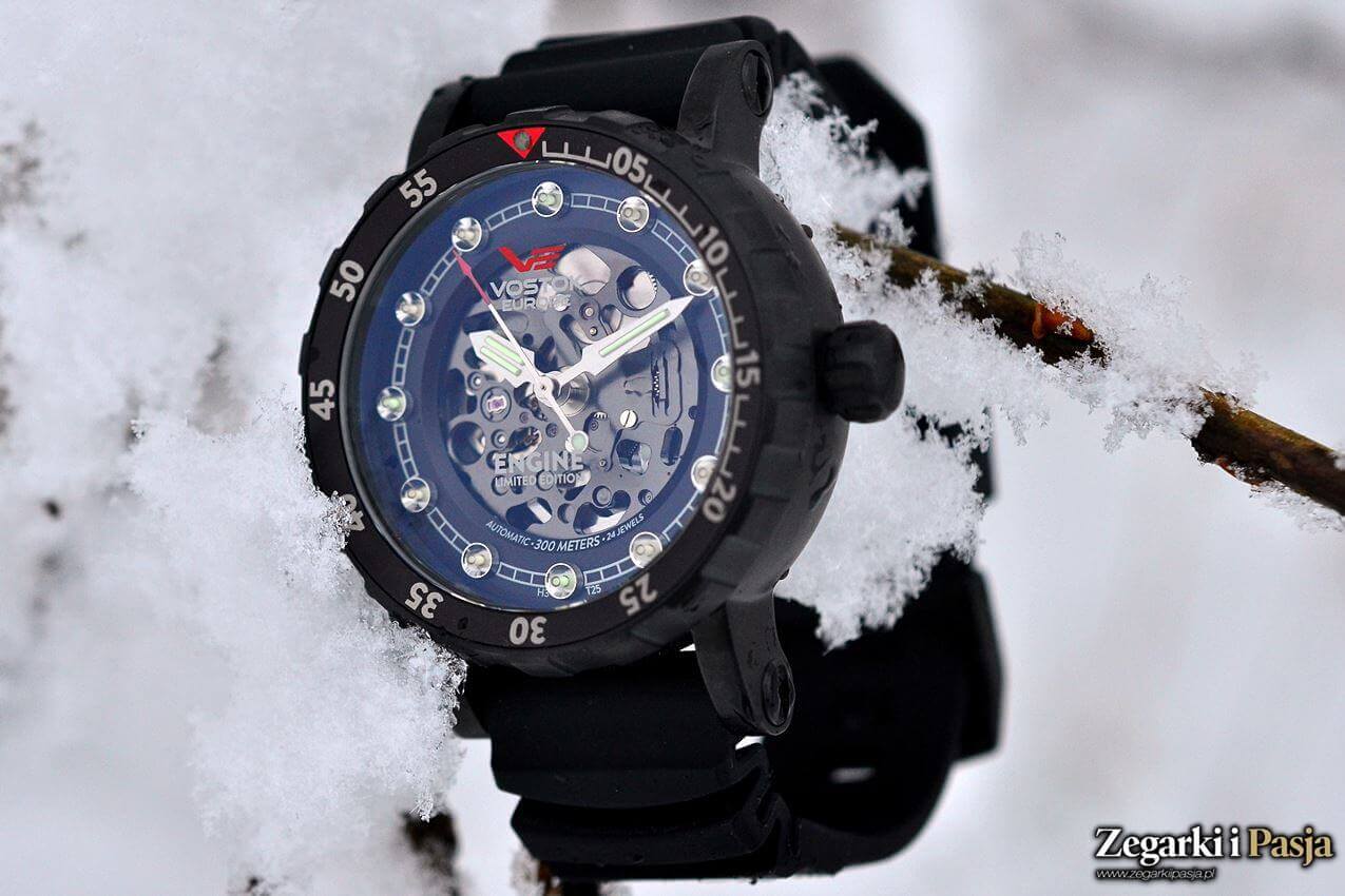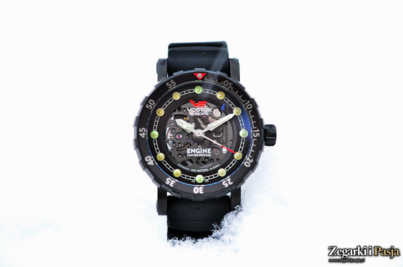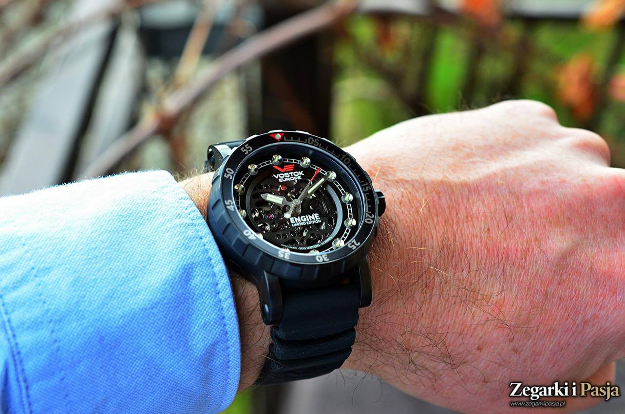 Vostok Europe Engine Skeleton Limited Edition Automatic to sportowy, solidny zegarek do użytkowania na co dzień, z którym możemy bez problemu także nurkować, gdyż jego parametry techniczne i elementy w pełni na to pozwalają. Jego wygląd przyciąga wzrok. Jak na model szkieletowany jest on dobrze czytelny, a w ciemności wręcz doskonale czytelny ze względu na trytowe podświetlenie wskazań, wzmocnione konstrukcją indeksów odbijającą luminescencję. Zegarek dobrze sprawdzi się na średnich i solidniejszych nadgarstkach.