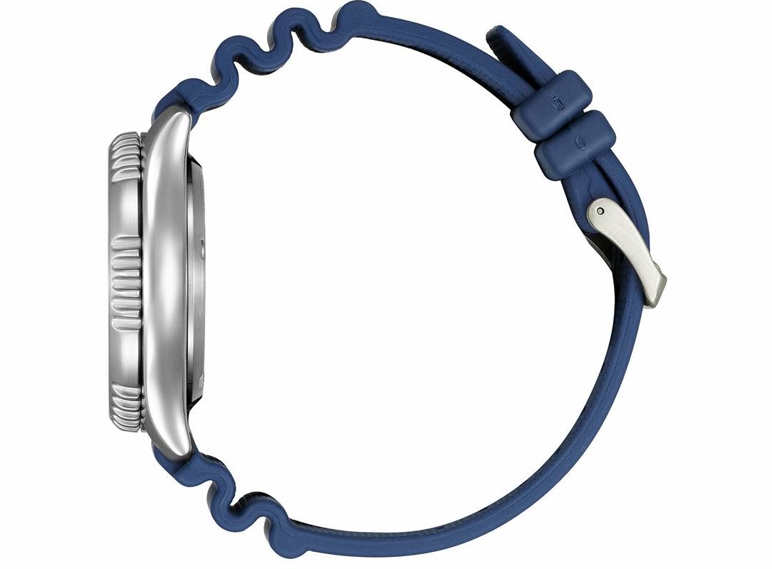 Model Citizen Promaster ISO 200M z ciemną kopertą oraz czarny są dostępne na trójrzędowych, stalowych bransoletach. Wersja niebieska jest oferowana na niebieskim gumowym pasku.
