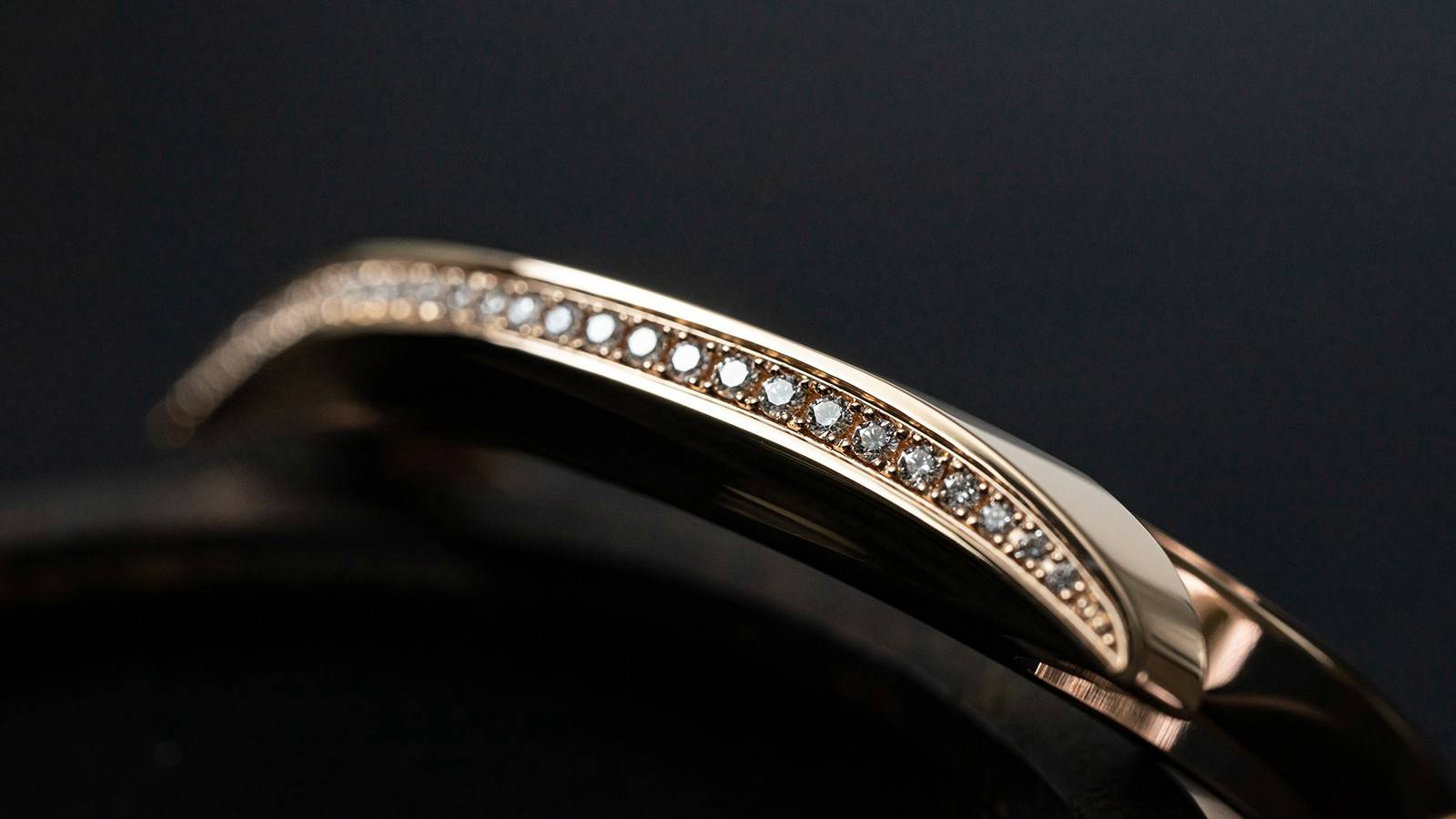 Jednym z priorytetów w fazie projektowej tego modelu było wyszczuplenie konstrukcji. W rezultacie przestrzeń między tarczą a podwójnie zakrzywionym, szafirowym szkłem jest bardzo ograniczona, co wymagało pieczołowitego, ręcznego zaginania wskazówek.
