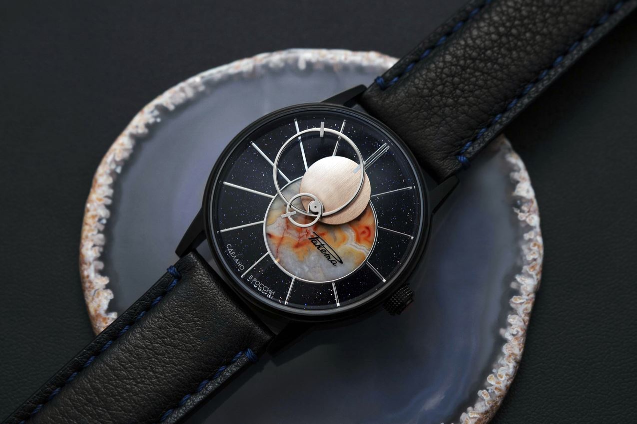 Tarczę nowej, limitowanej wersji Raketa “Copernicus” limited edition wykonano z nietypowych materiałów, które znakomicie podkreślają kosmiczne powiązania marki założonej w 1961 roku w celu uczczenia pierwszego w historii lotu załogowego Jurija Gagarina. Główną część stanowi niebieski awenturyn, który przypomina rozgwieżdżone niebo, a kolejną, nieco mniejszą i wyglądającą jak gorąca powierzchnia słońca.