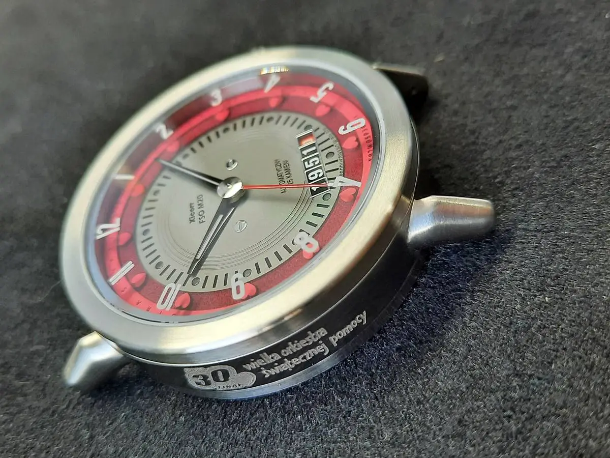 Został on pieczołowicie do tego przygotowany, co dla szczęśliwego nabywcy - poza poczuciem spełnienia dobrego uczynku i uczestnictwa w wielkiej akcji, zapewni naprawdę wyjątkowy i jedyny w swoim rodzaju egzemplarz udanego zegarka. Egzemplarz, który będzie mógł dumnie zdobić jakieś honorowe miejsce w domu, lub być zwyczajnie wygodnym, wyjątkowym i codziennym zegarkiem o dobrych parametrach.