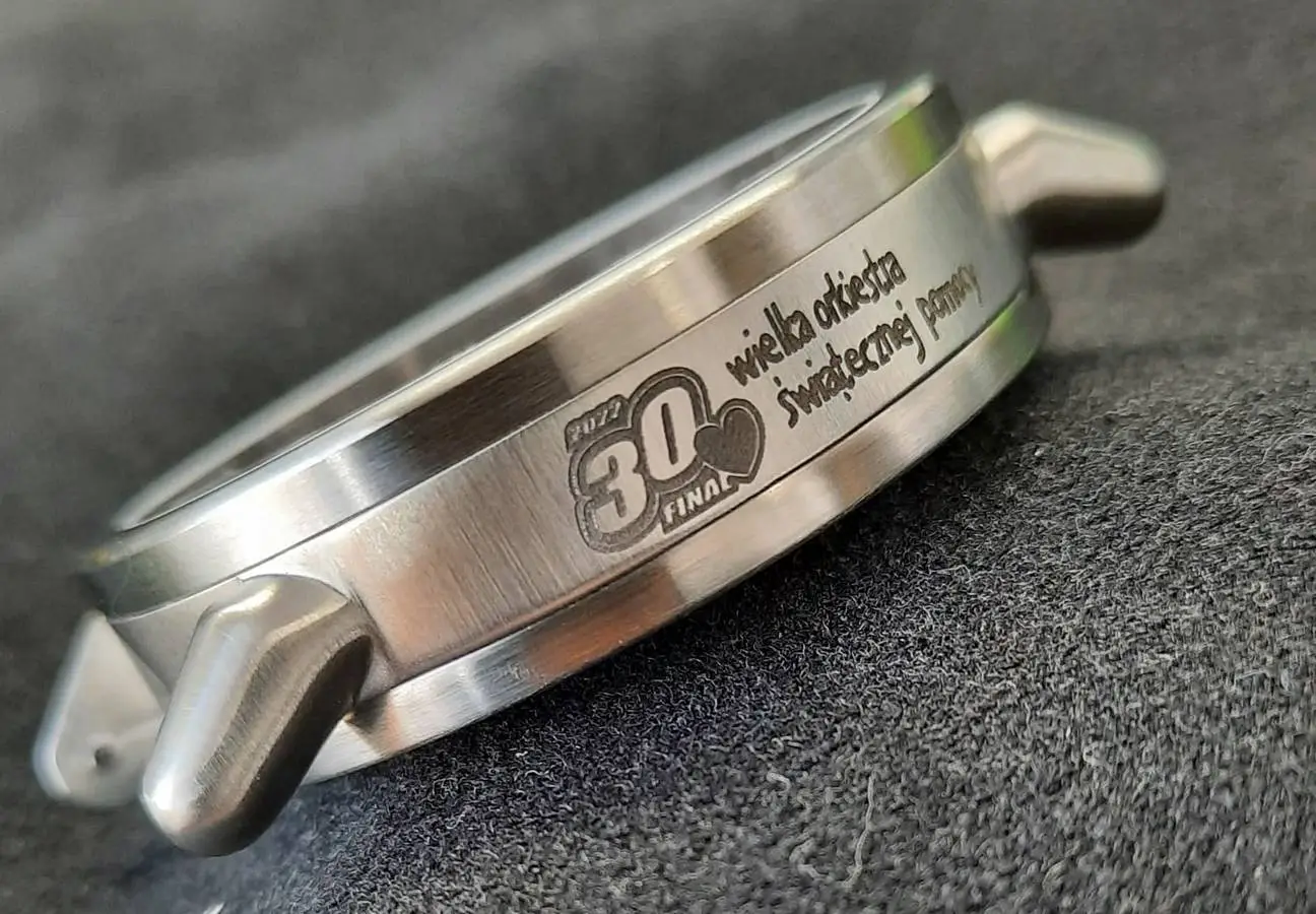 Typowa dla modelu stalowa koperta o średnicy 42 mm i okrągłym kształcie z charakterystycznymi, prostopadle wyprowadzonymi uszami na boku będzie miała wygrawerowane laserowo logo 30 finału WOŚP.